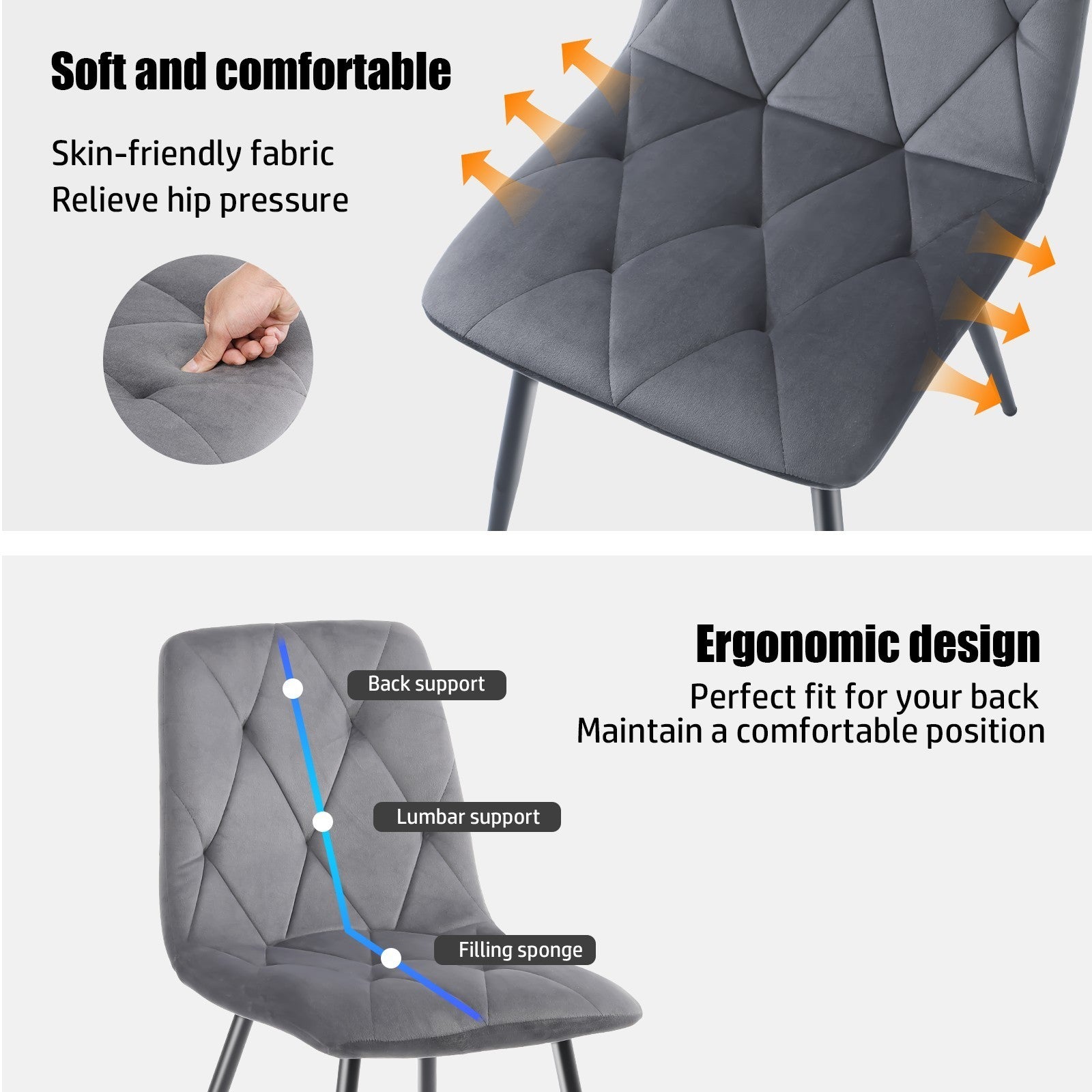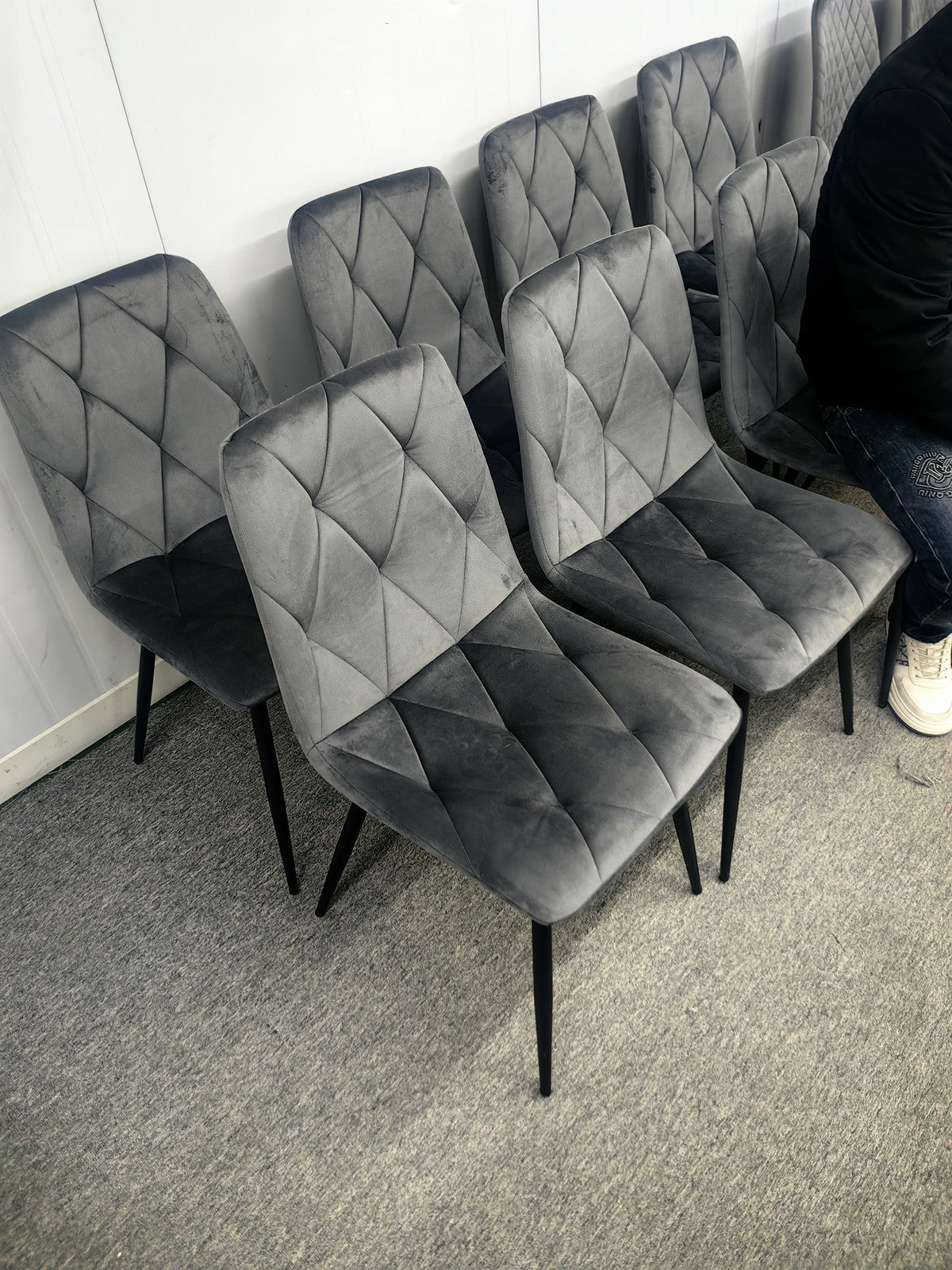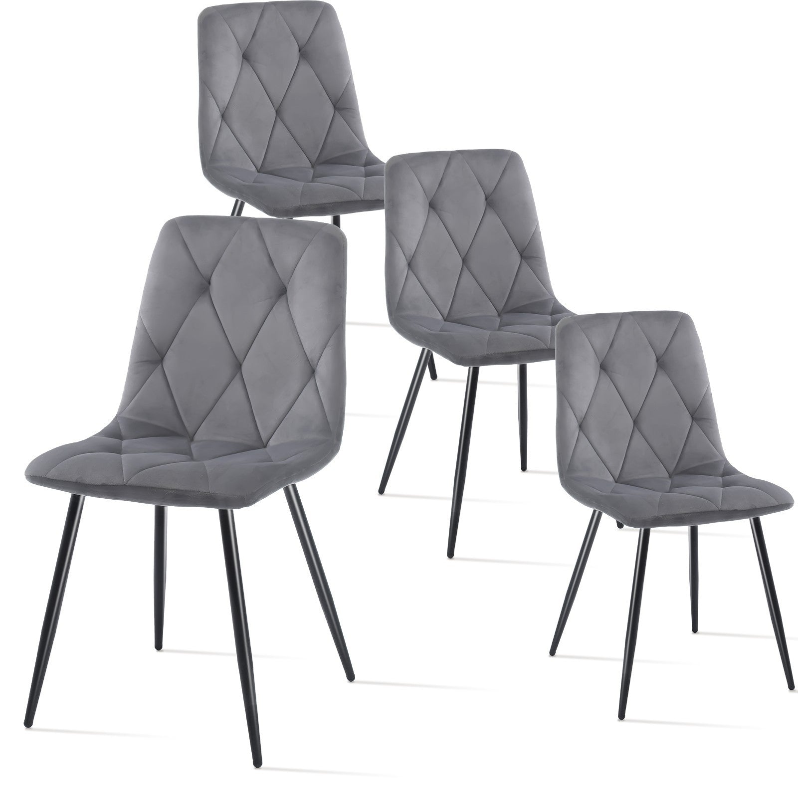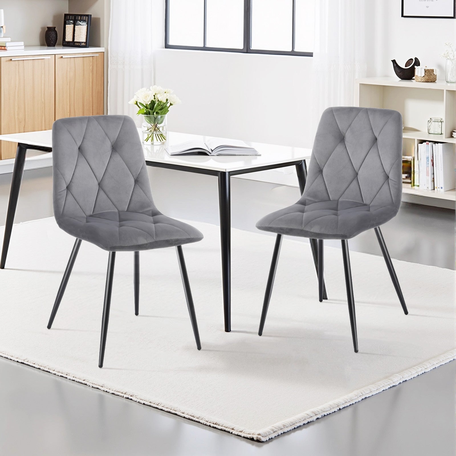 4PCS Dining Chairs Set Velvet Faux Suede Leather Padded Seat Metal Leg Grey UK
