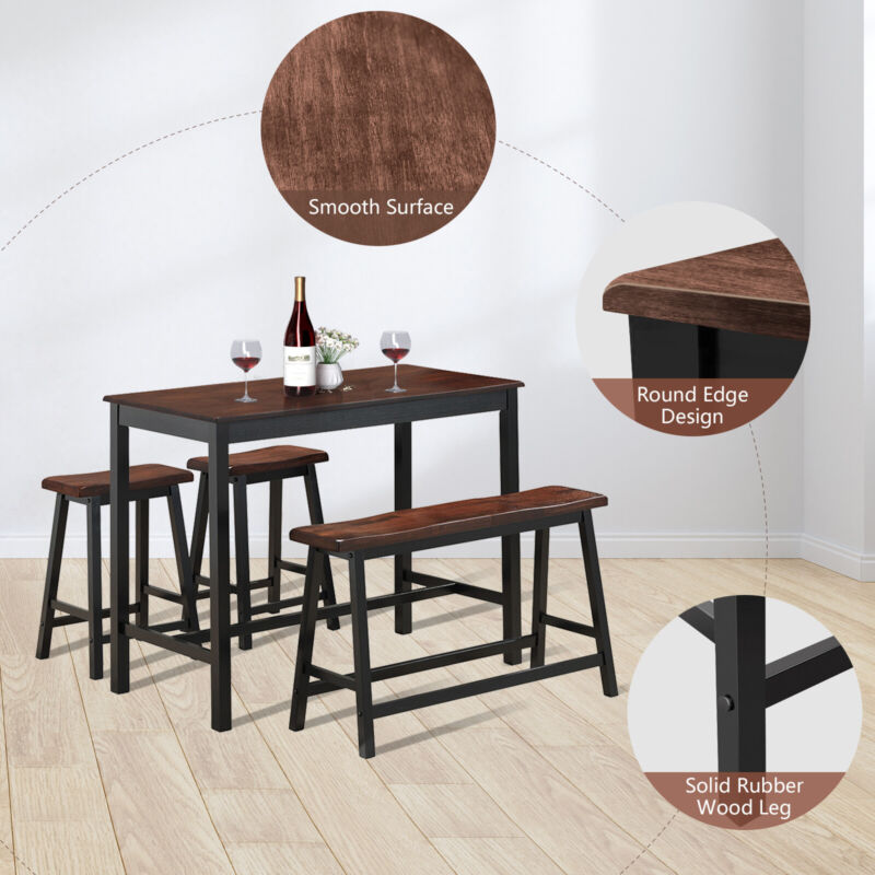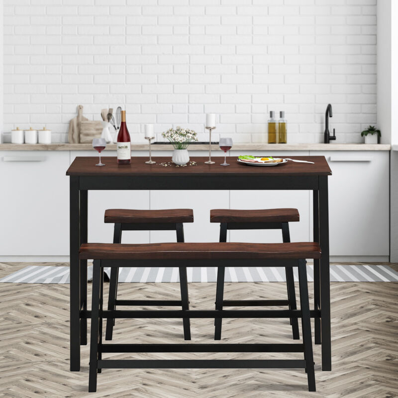 4PCS Dining Table & Chair Set Kitchen Furniture W/ Counter Table Bench & Stools