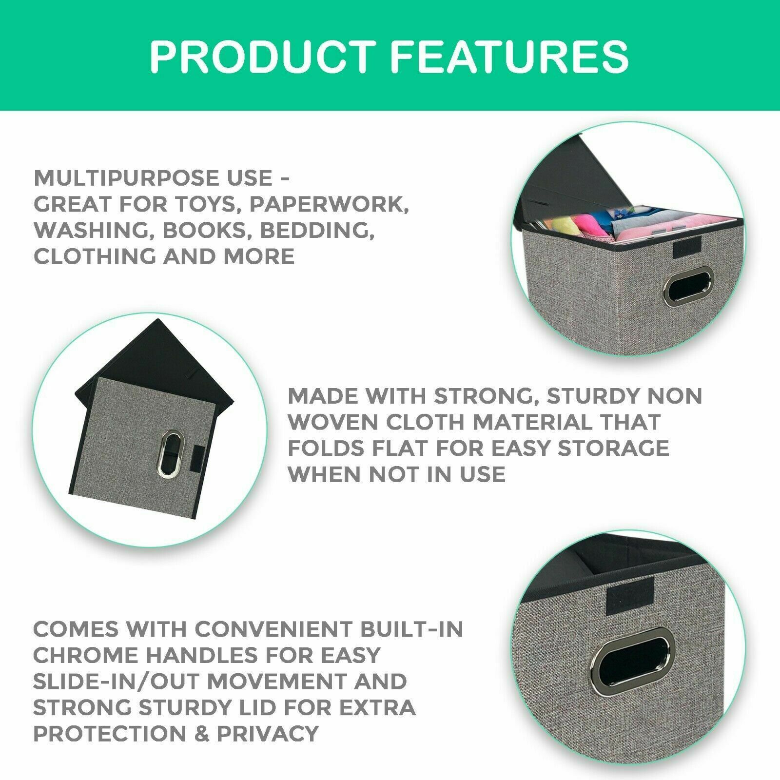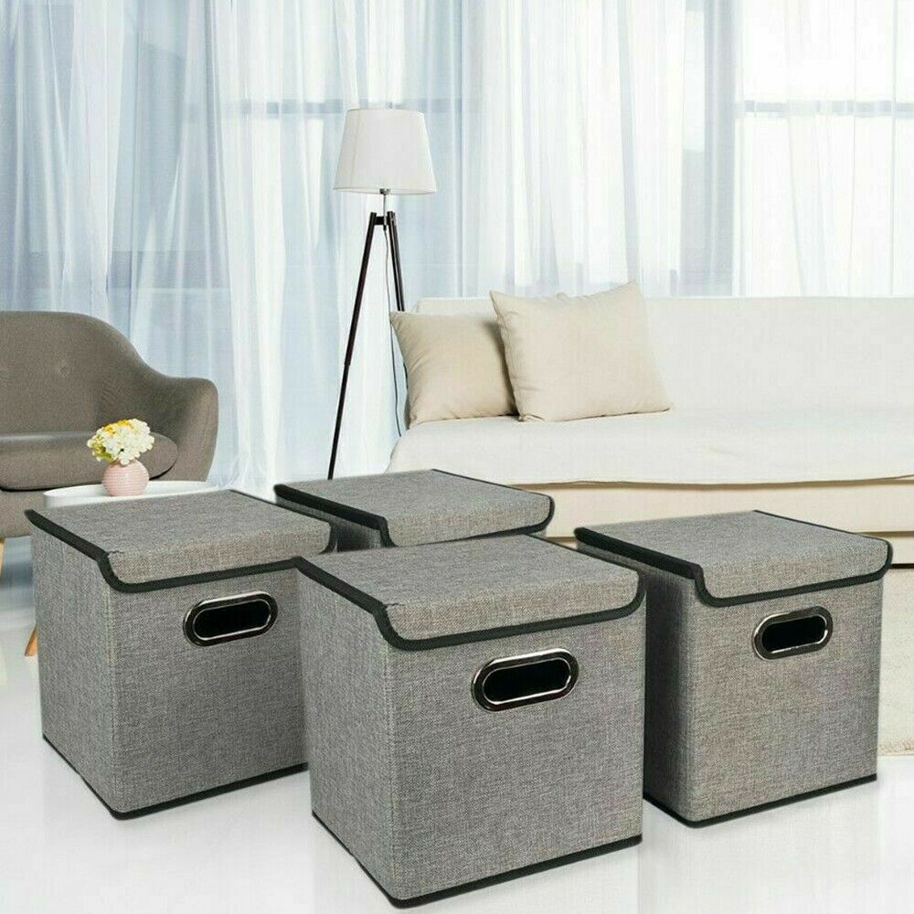 4PCS Foldable Storage Boxes with Lids Fabric Cube Clothes Organiser Storage Case