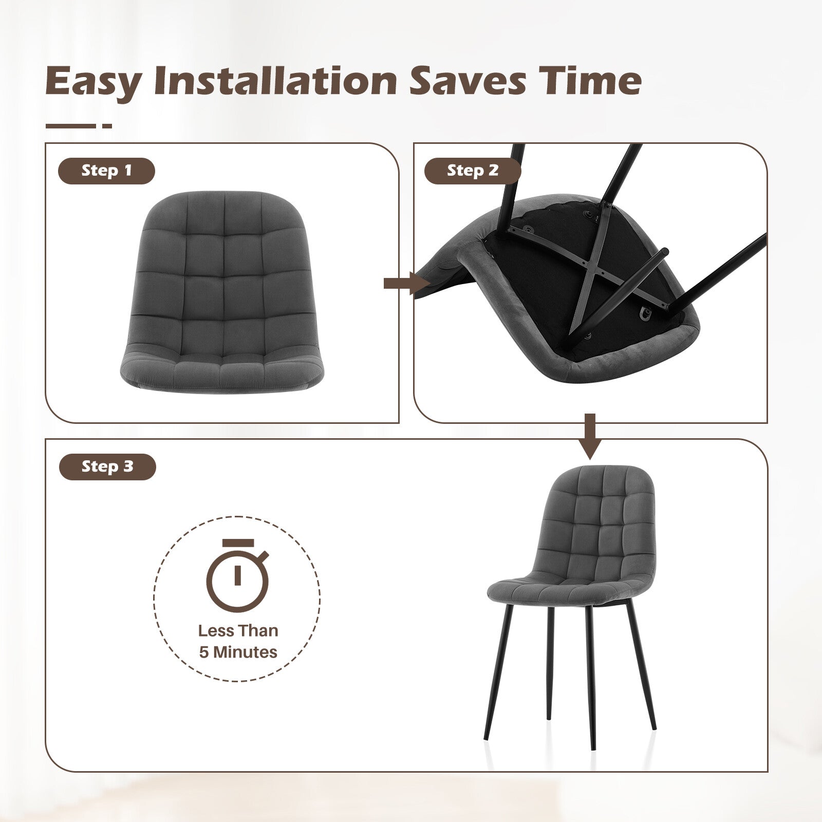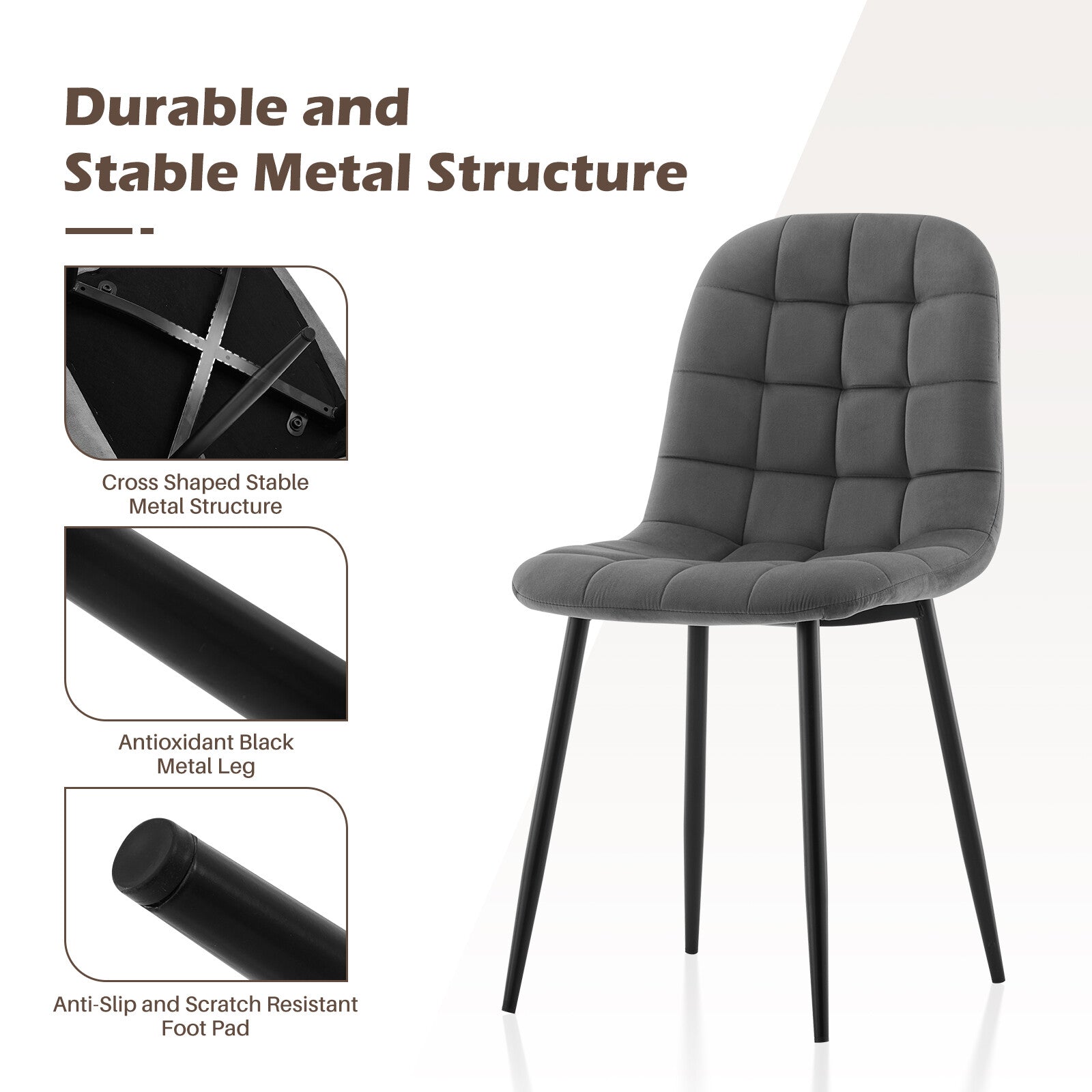 4PCs Folk Designer Velvet Dining Chairs Metal Legs Chairs Dining Room Kitchen