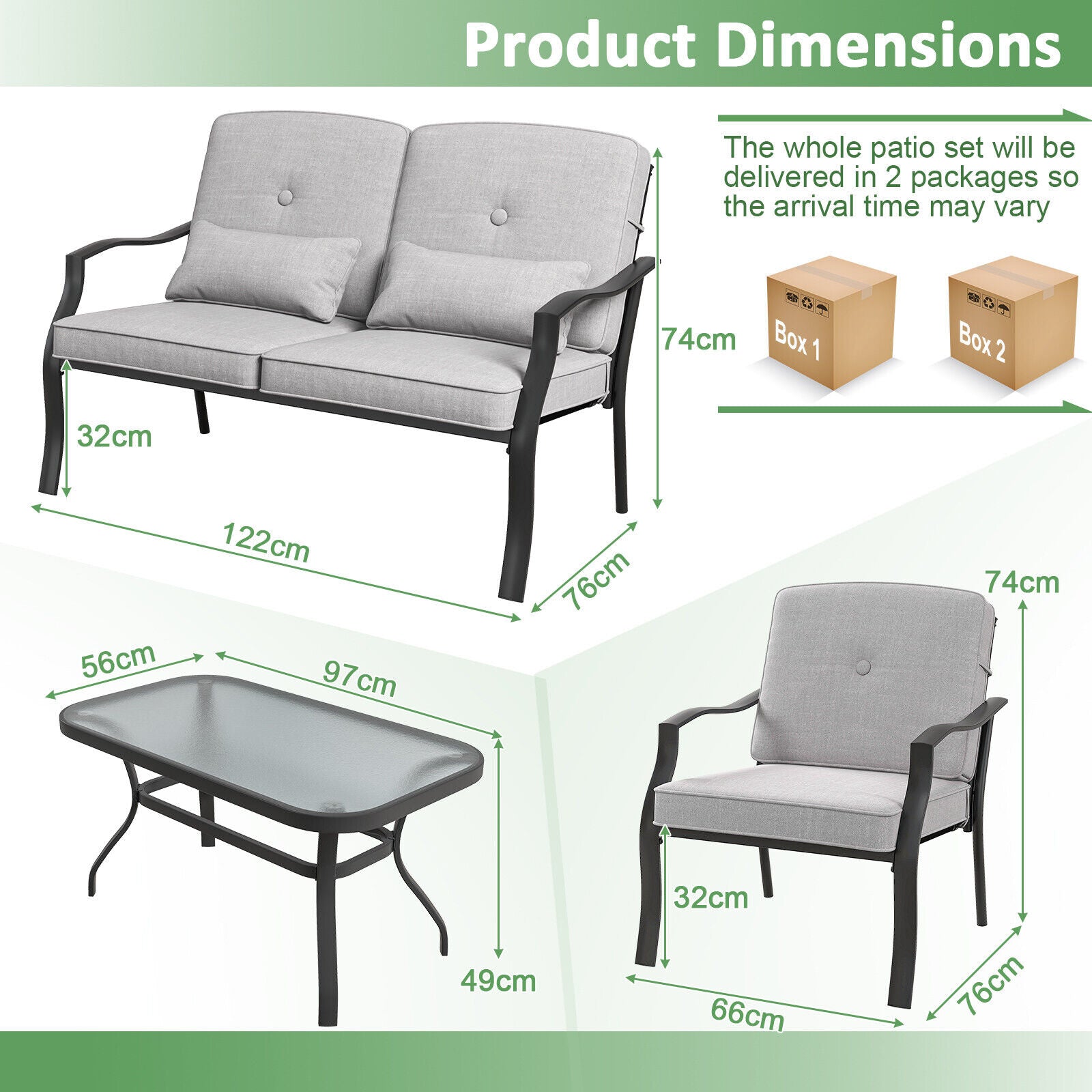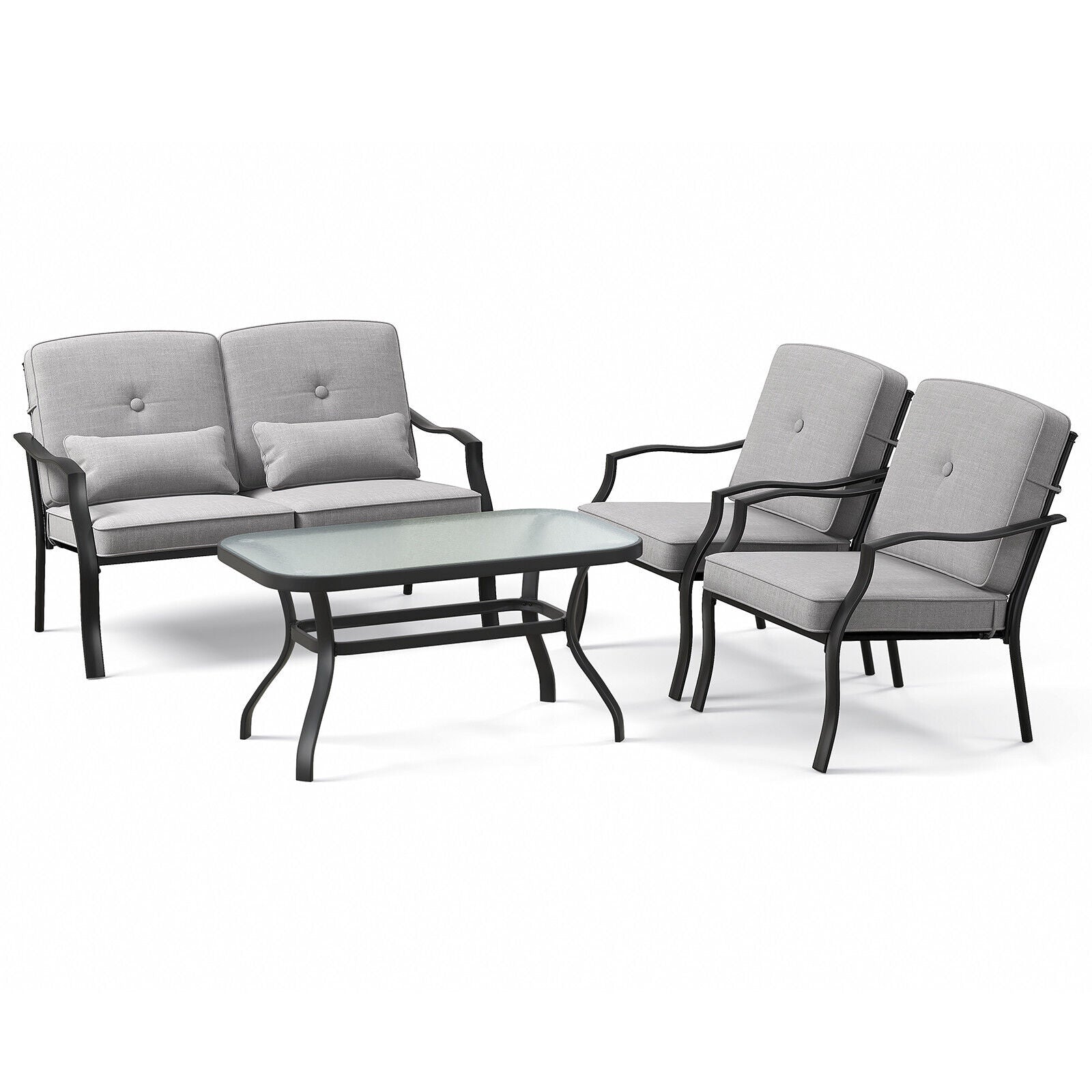 4Pcs Garden Patio Conversation Furniture Set Metal Outdoor Sofa Set w/Cushions