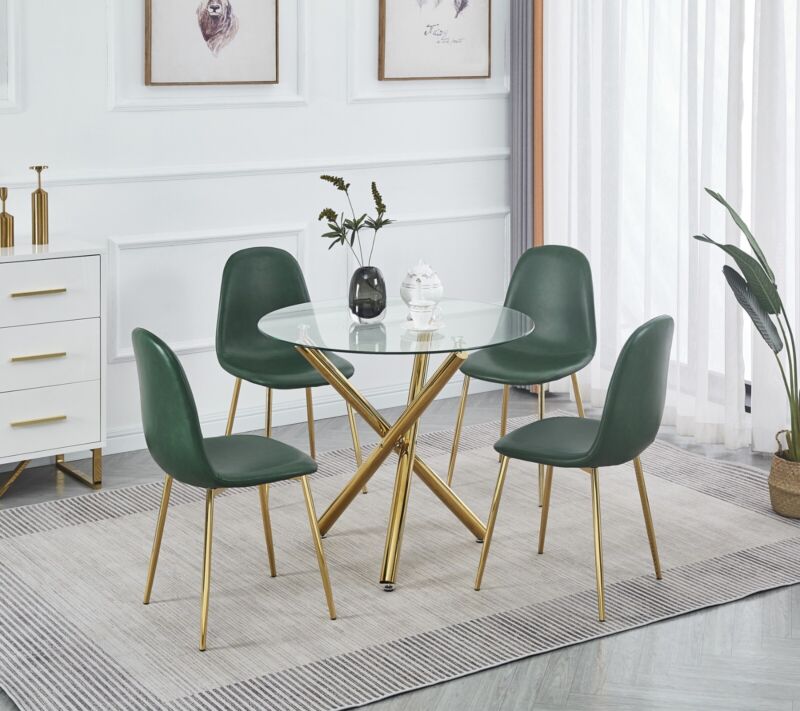 4pcs Green PU Leather Dining Chairs Golden Chromed Legs for Dining Room Kitchen
