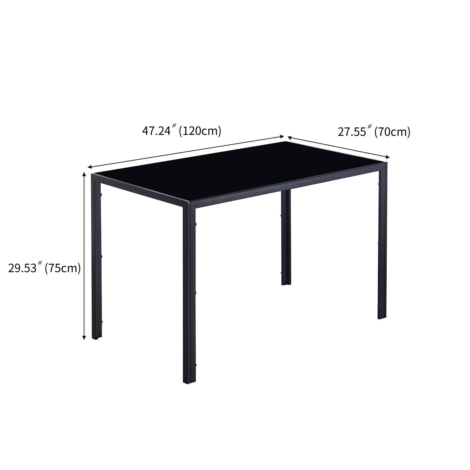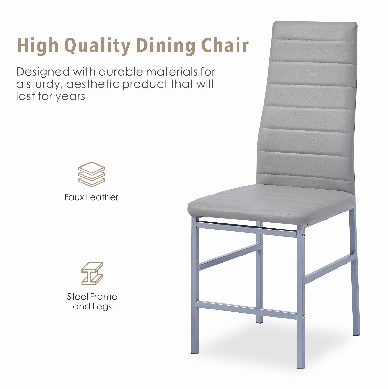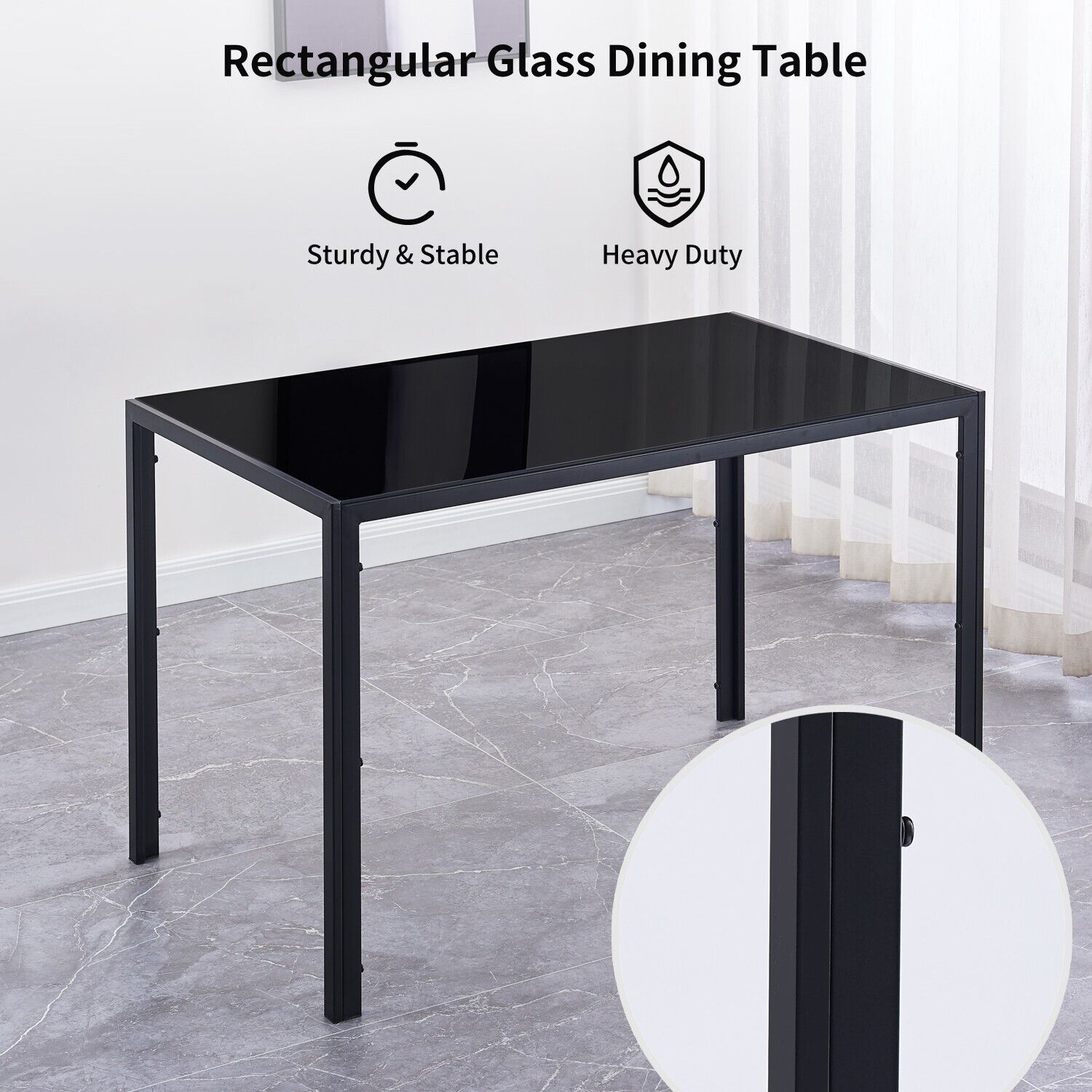 4pcs Grey Faux Leather Dining Chairs Footrest Legs&Black Glass Dining Table Set