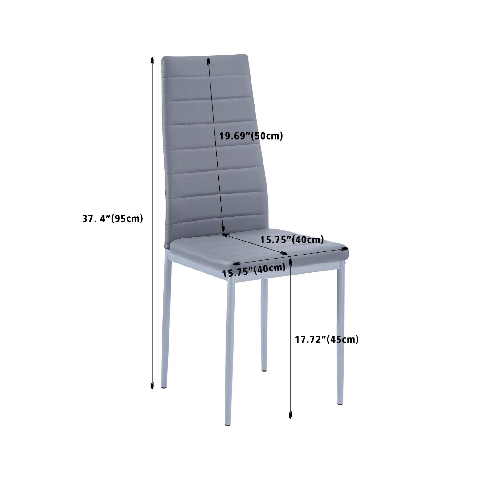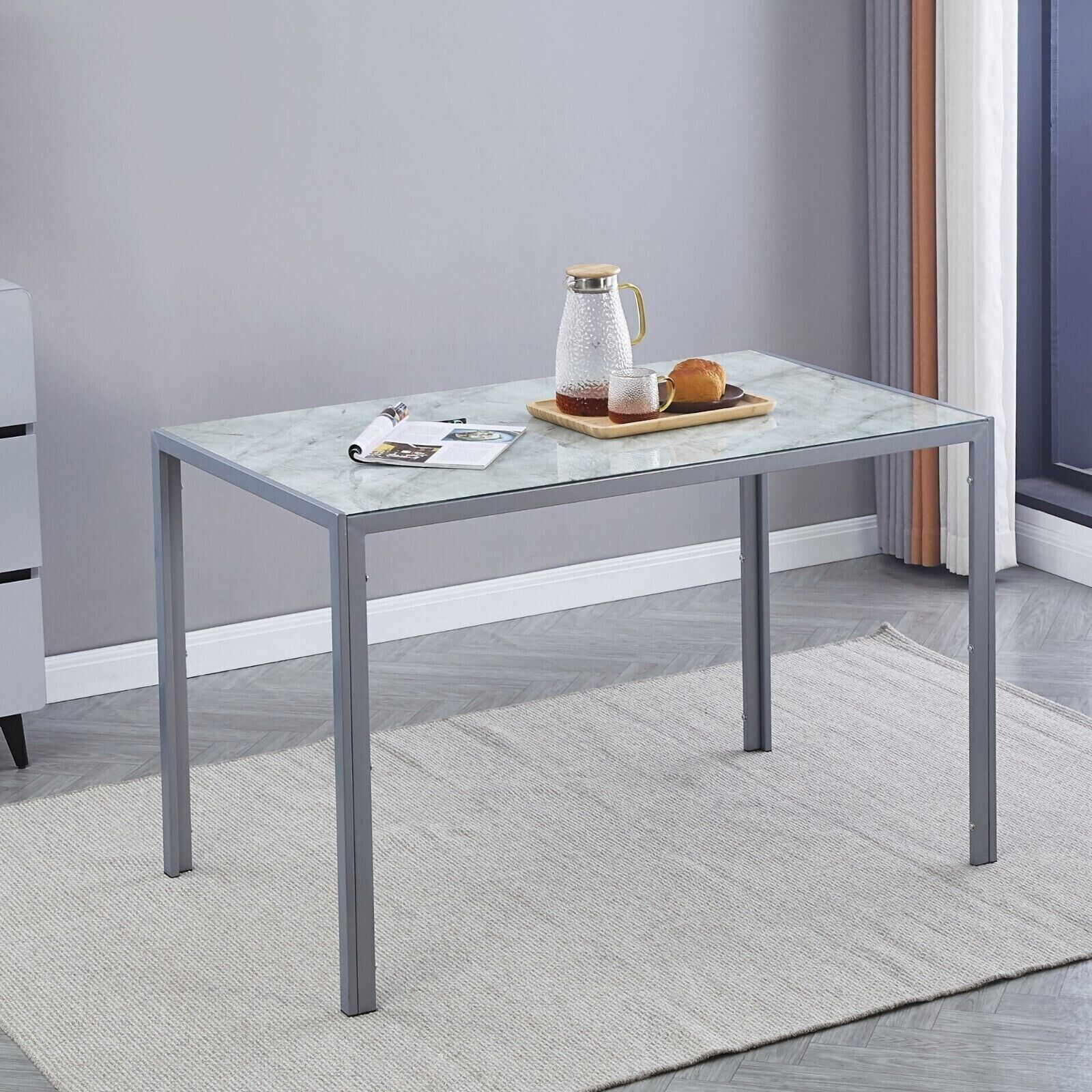 4pcs Grey Faux Leather Padded Seat Dining Chairs&Grey Marble Glass Dining Table