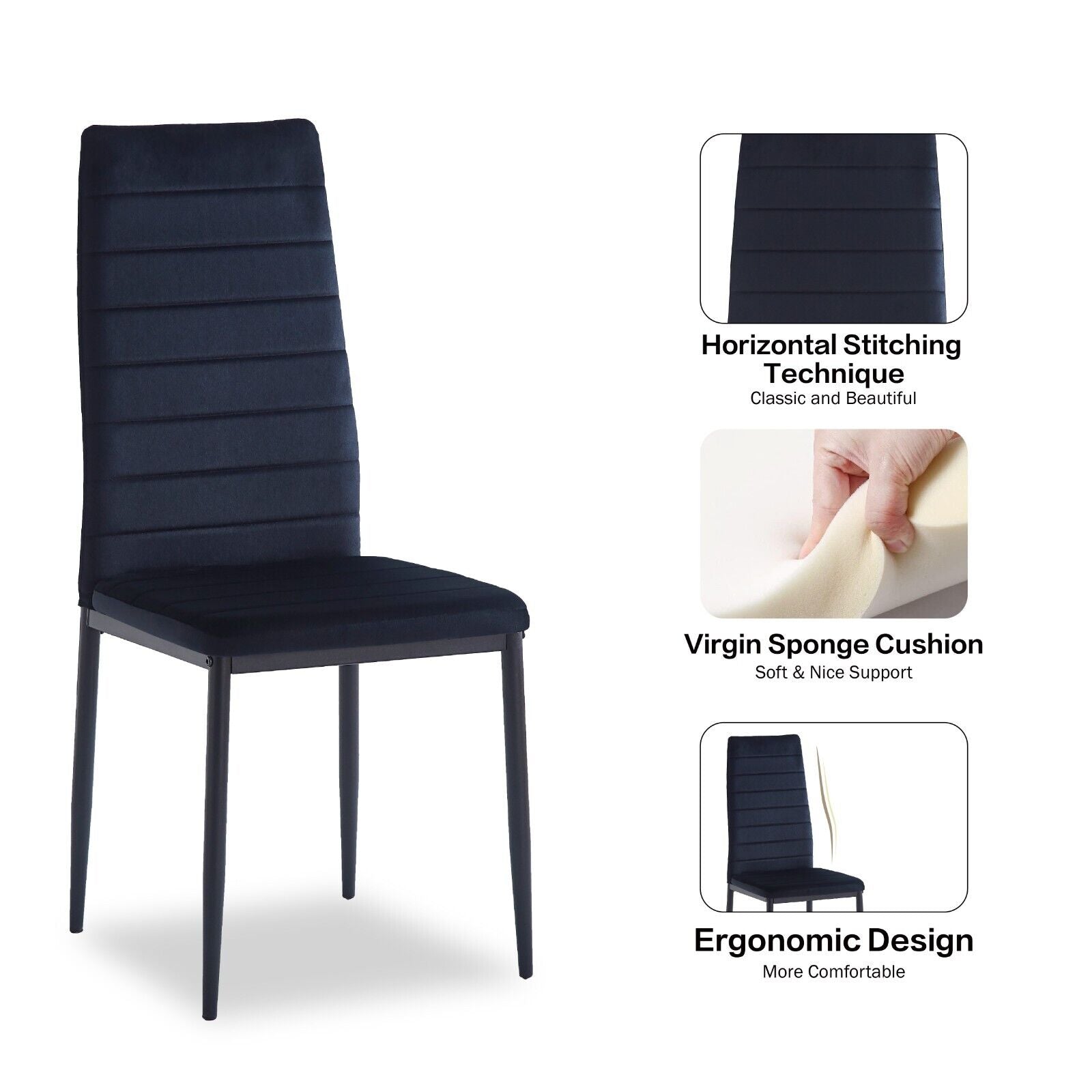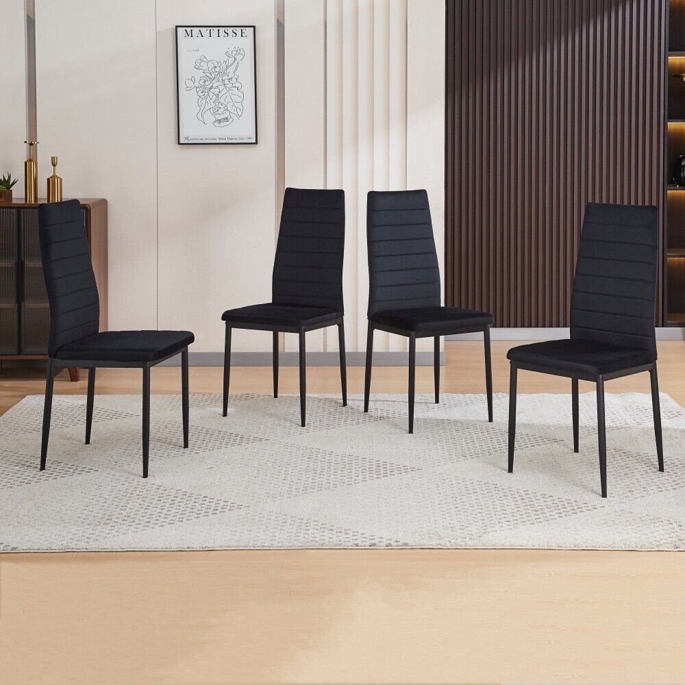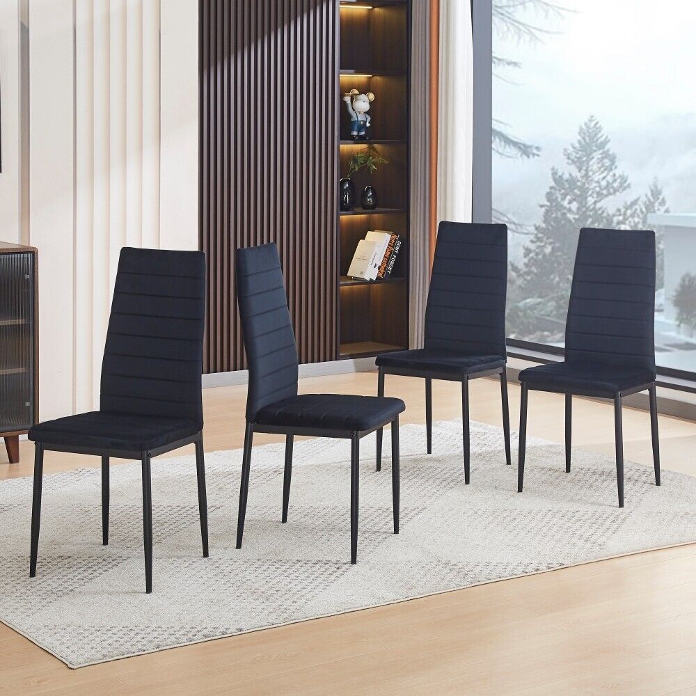 4pcs High Back Black Velvet Dining Chairs Padded Seat Dining Room Kitchen