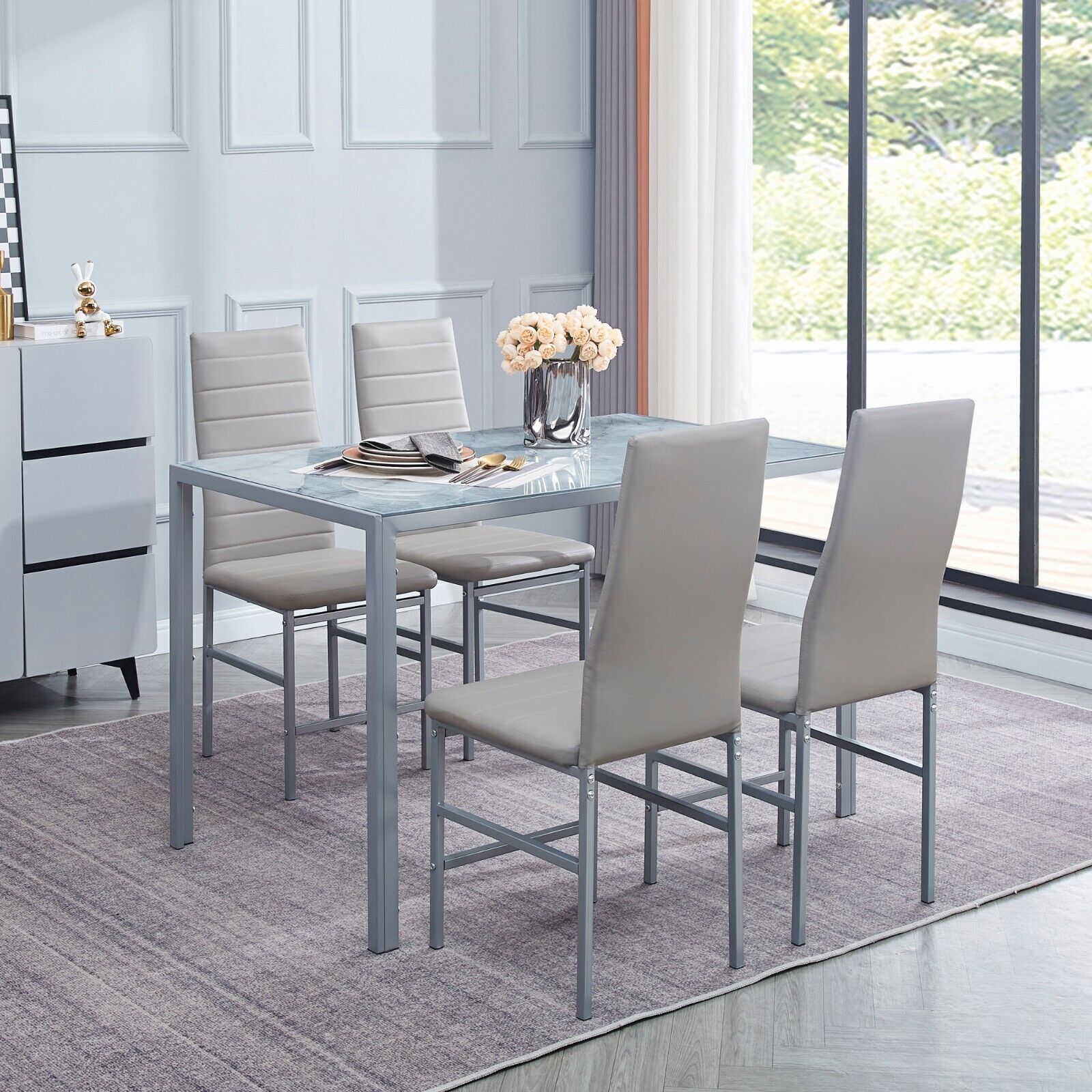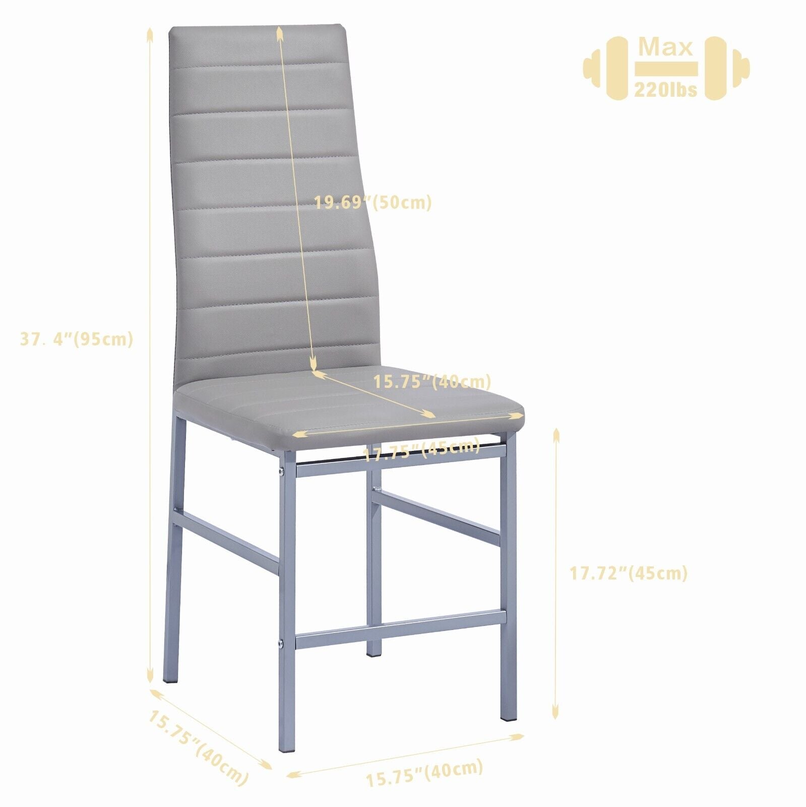 4pcs High Back Grey Faux Leather Dining Chairs Footrest Legs Dining Room Kitchen
