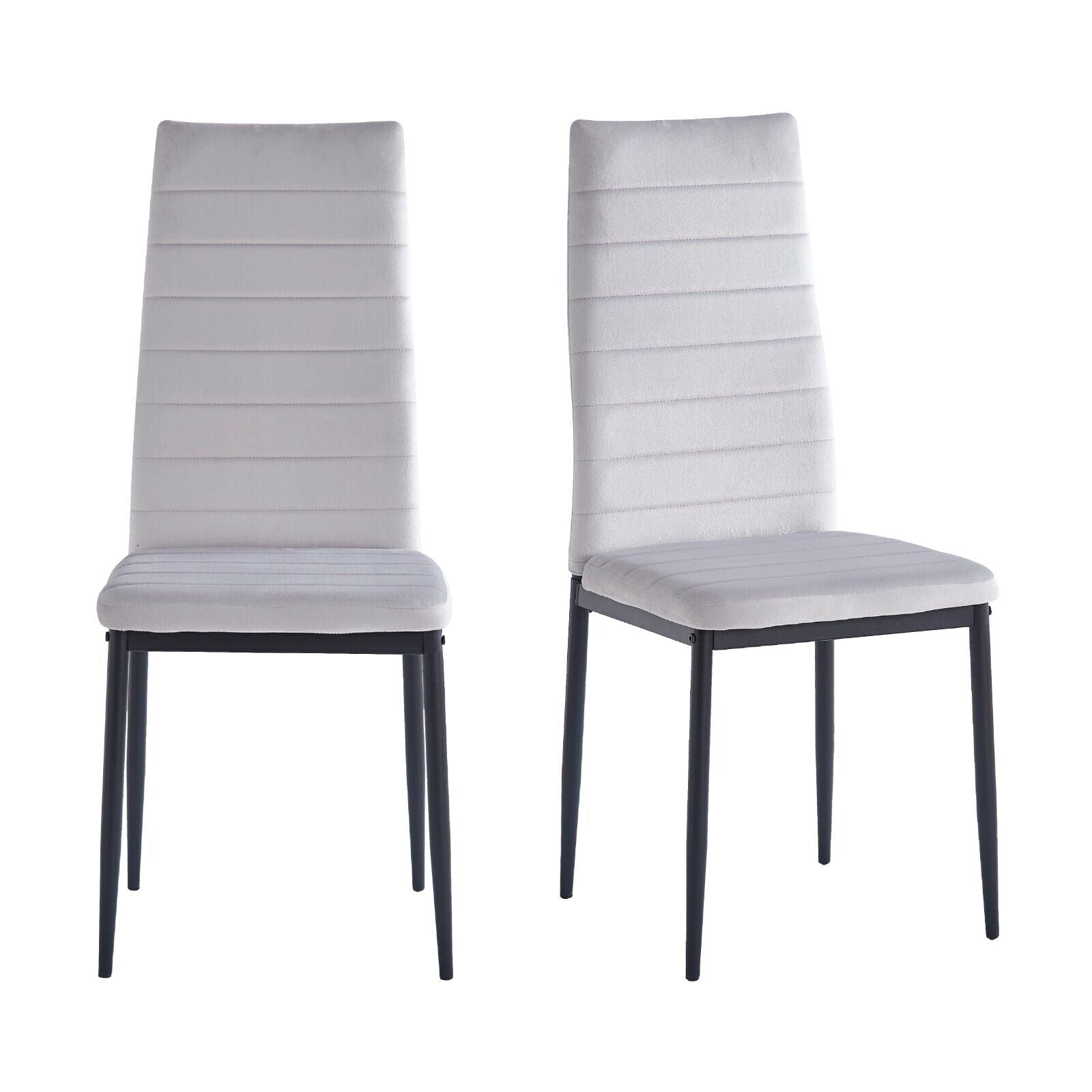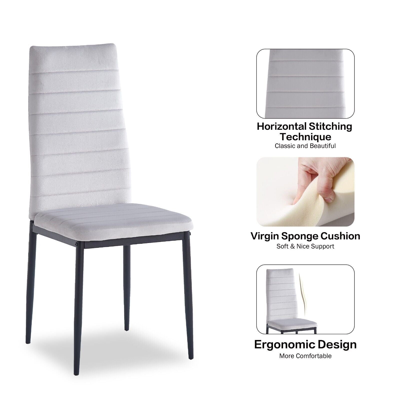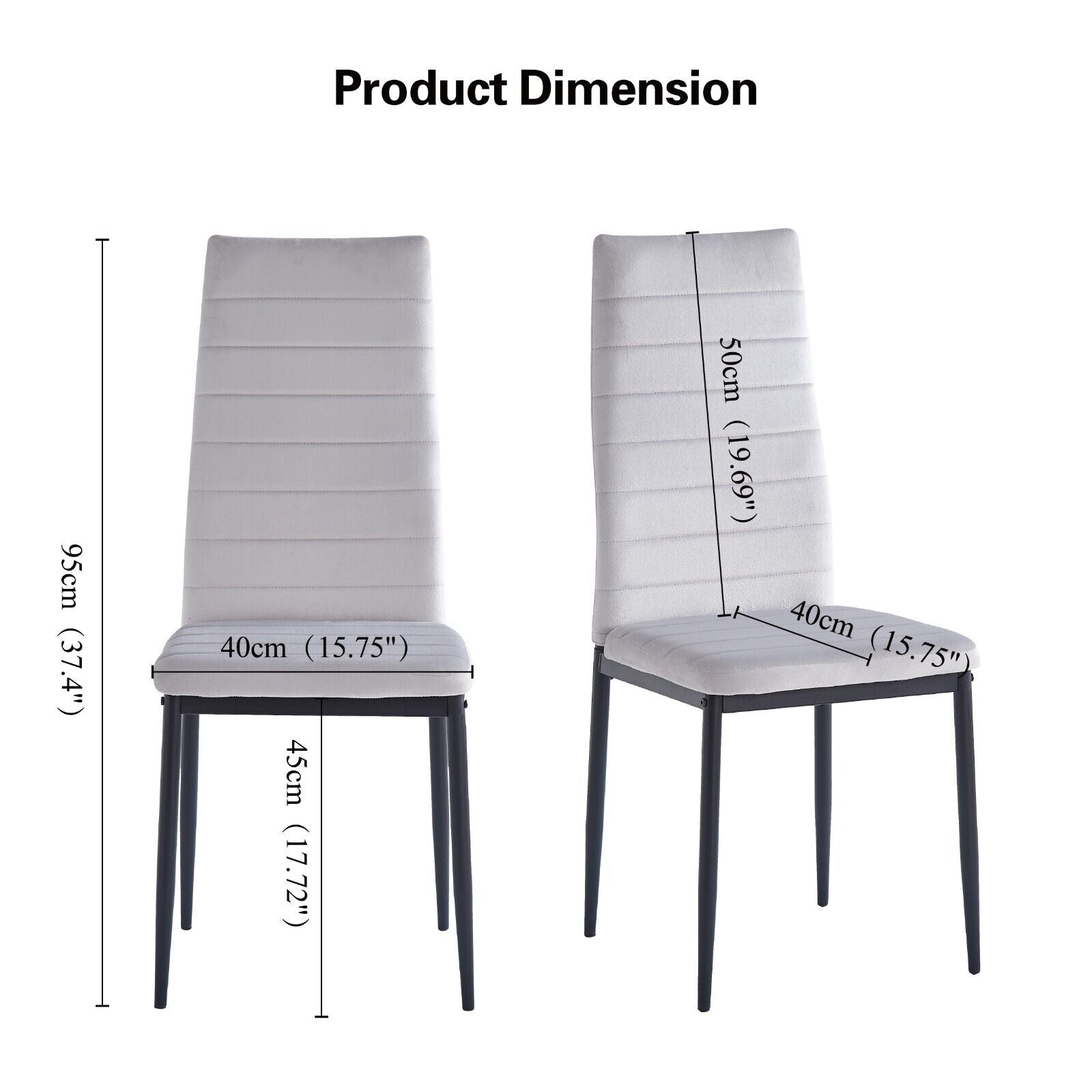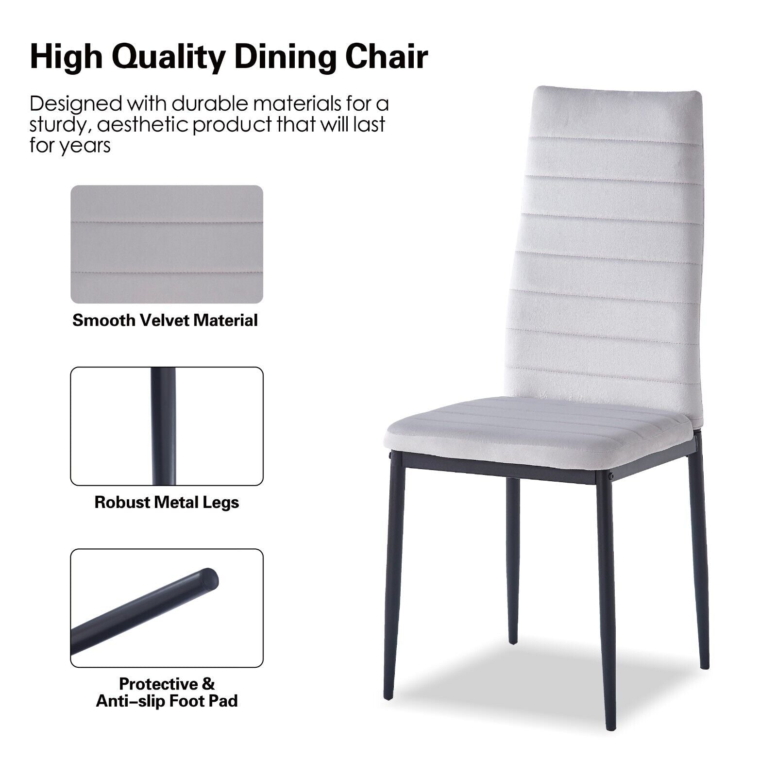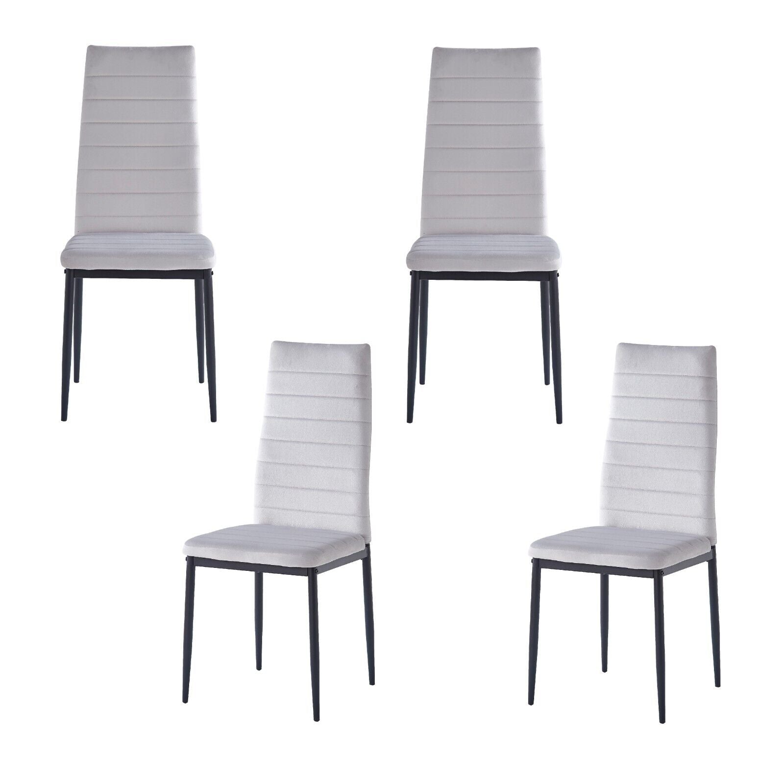 4pcs High Back Light Grey Velvet Dining Chairs Padded Seat Dining Room Kitchen