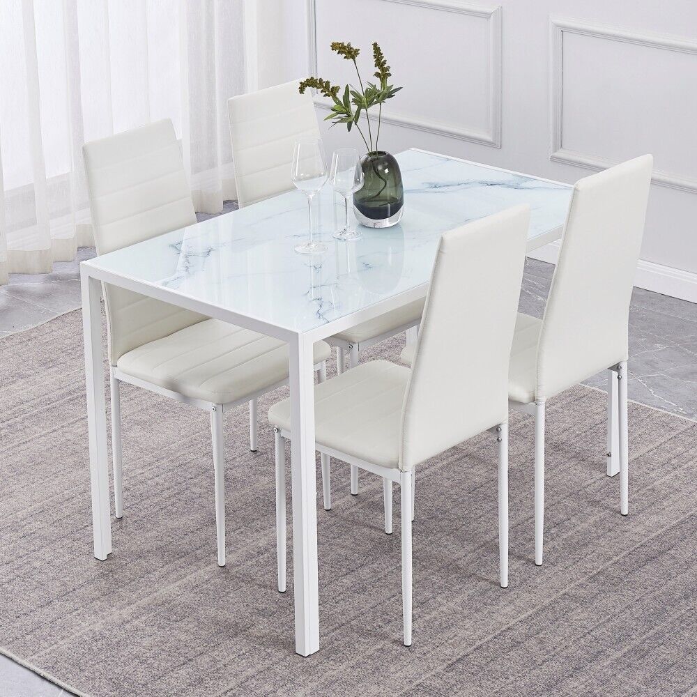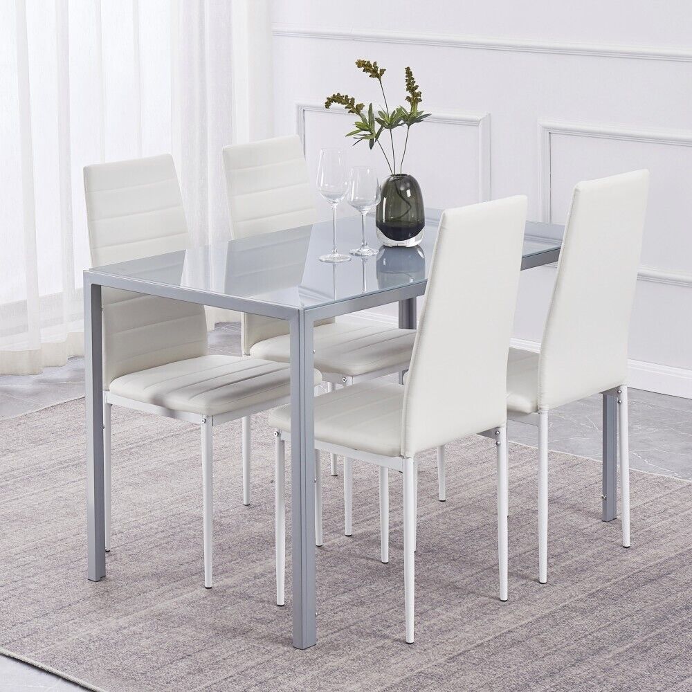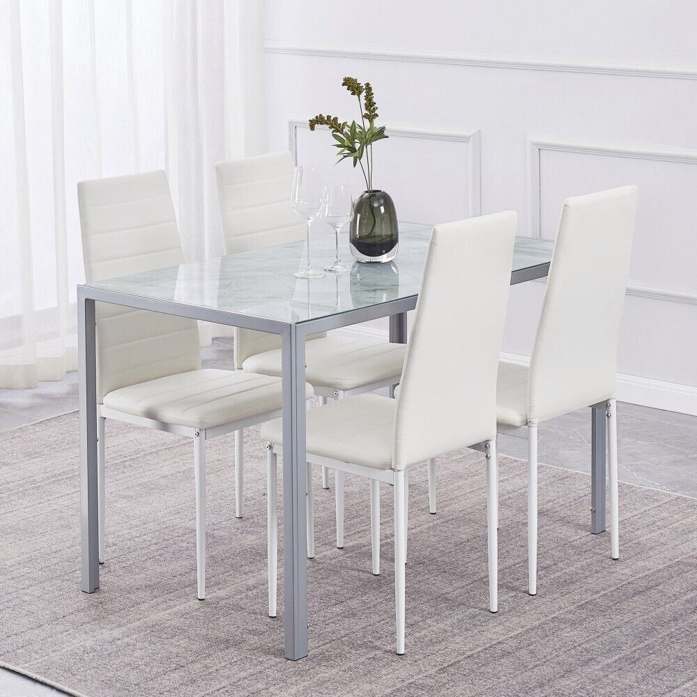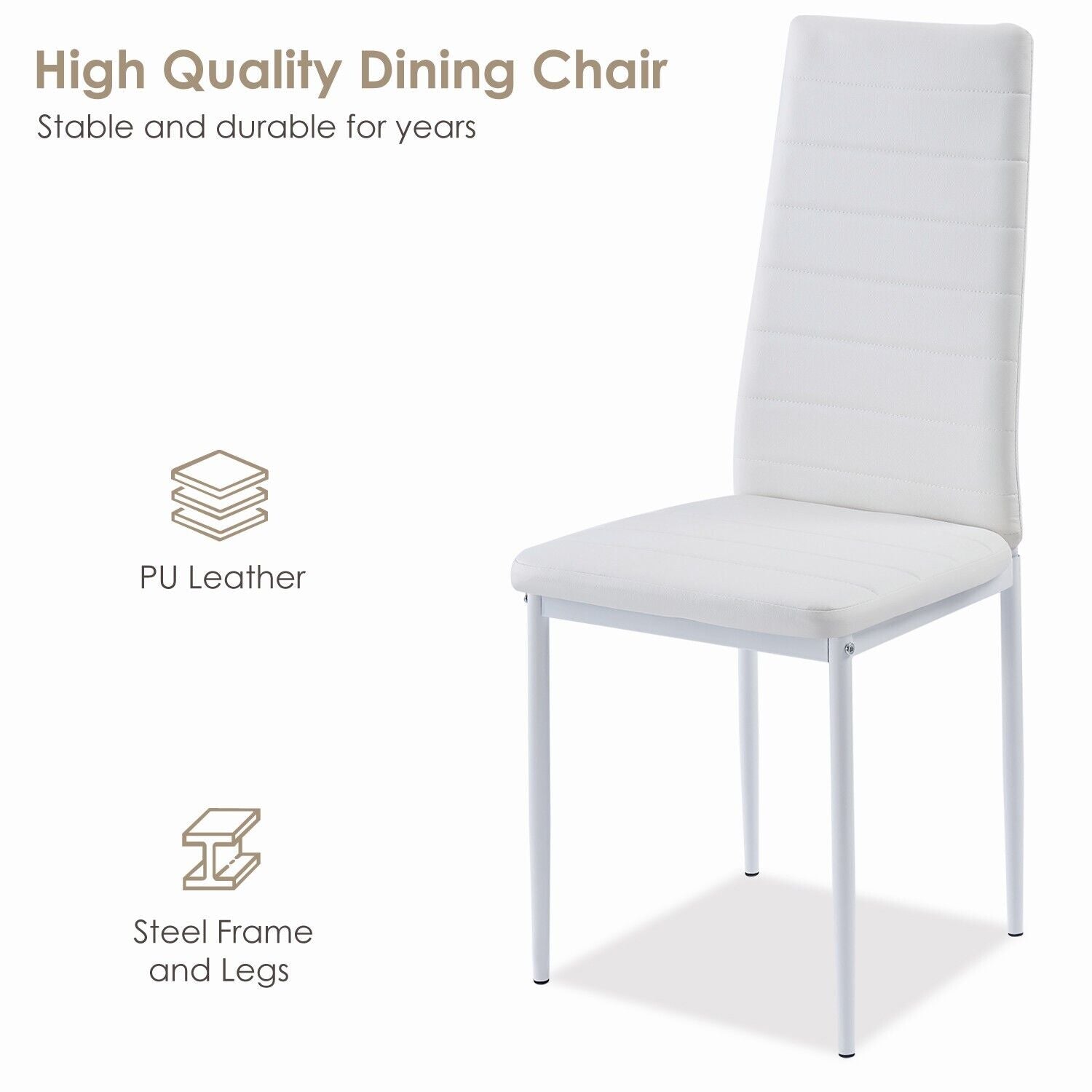 4pcs High Back White Faux Leather Dining Chairs Metal Legs Dining Room Kitchen