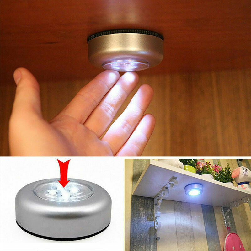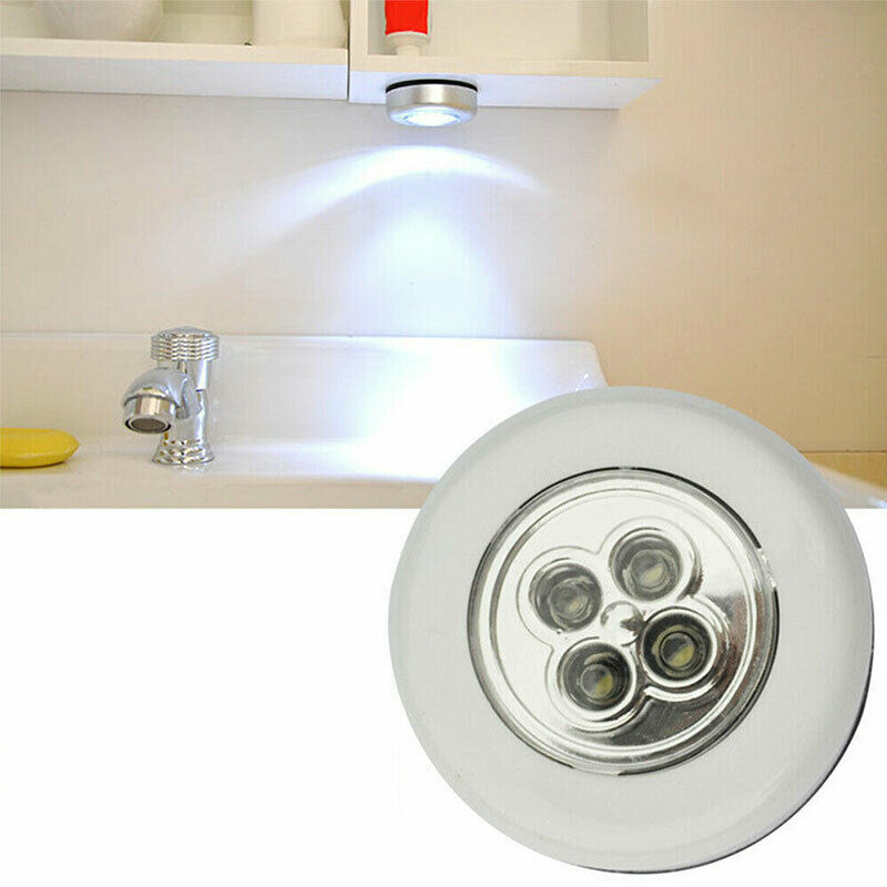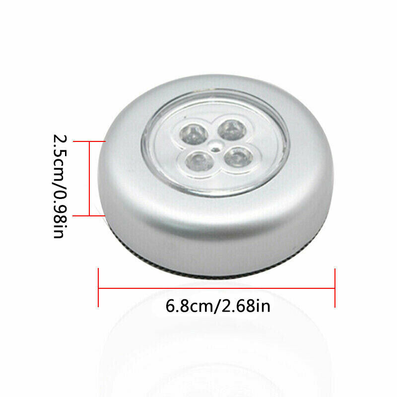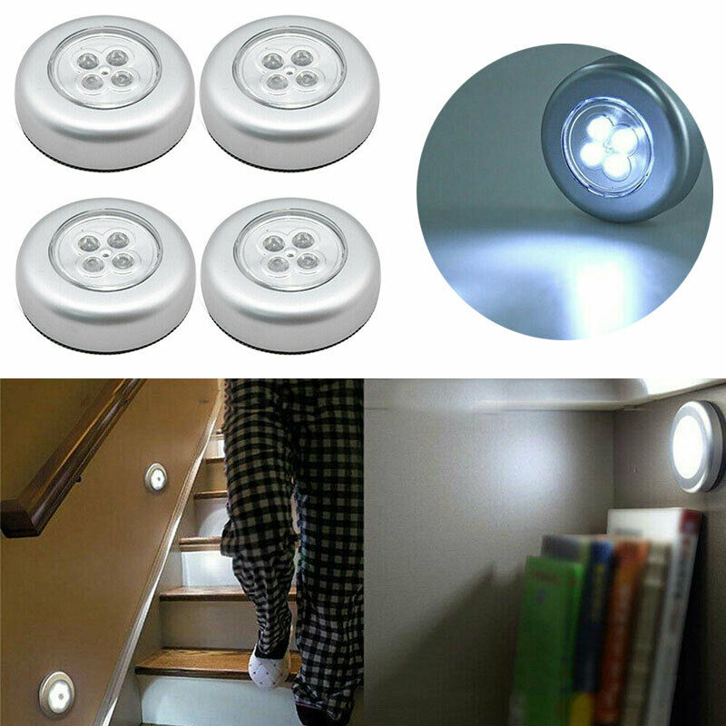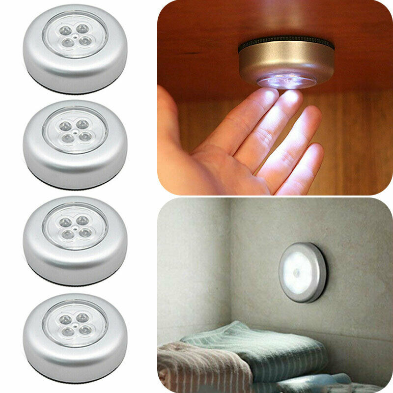 4pcs LED Touch Push Button Light Self-Stick on Battery Powered Cabinet Spot Lamp