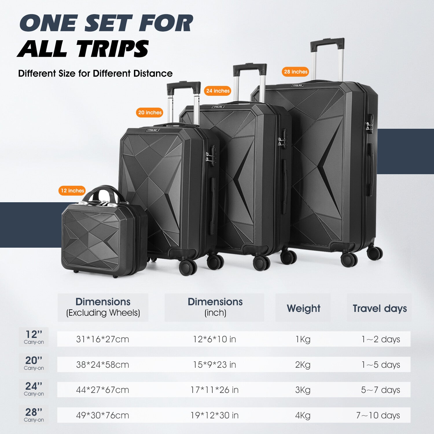 4Pcs Luggage Suitcase Set Hard Shell Trolley 4 Wheel Travel Cabin Carry On Bag