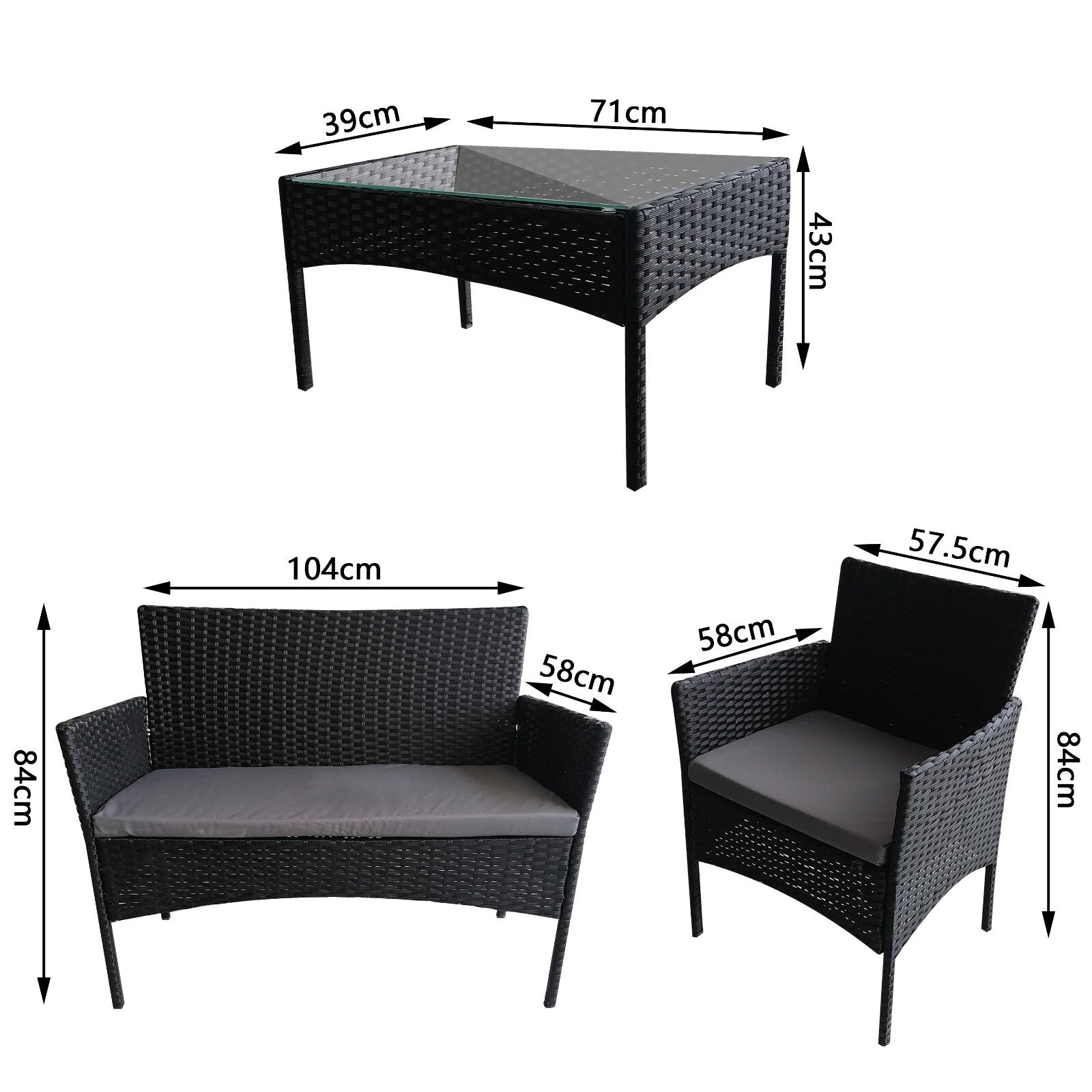 4pcs Rattan Outdoor Garden Furniture Sofa Set Table & Chairs (Roger Black )