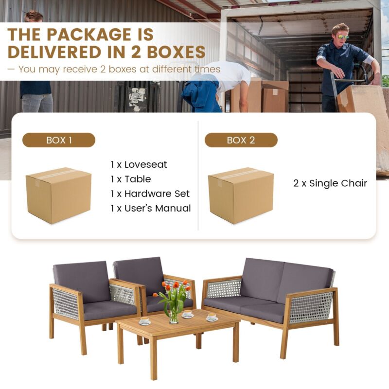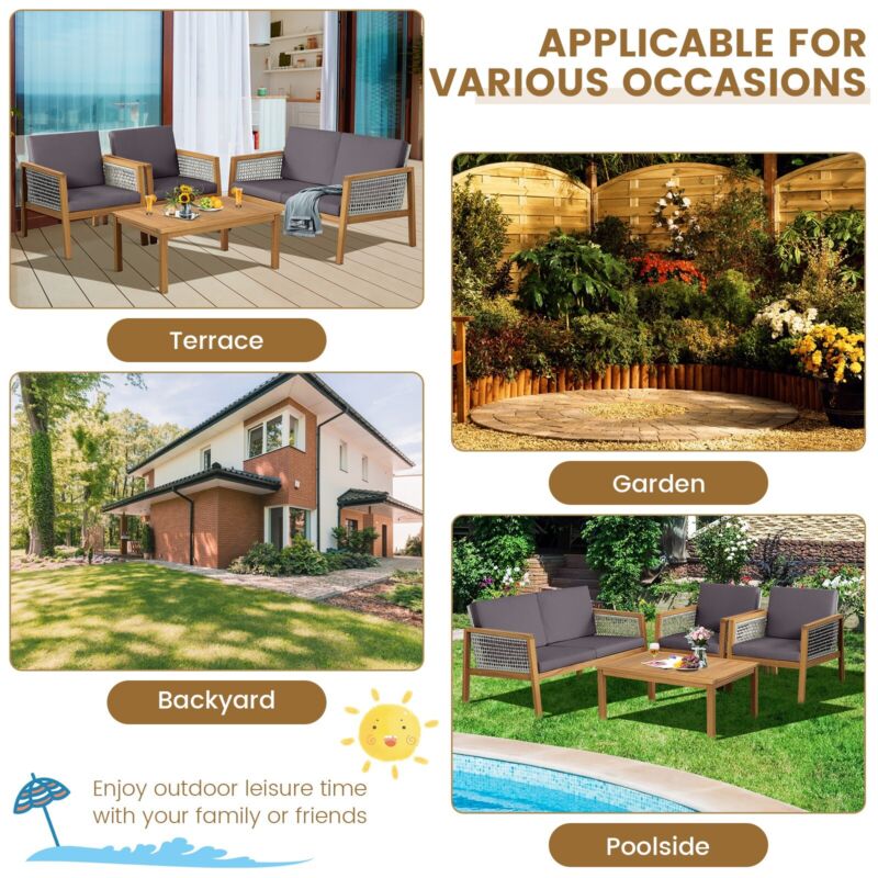 4Pcs Rattan Patio Garden Furniture Table Chairs Set Outdoor Furniture w/Cushions