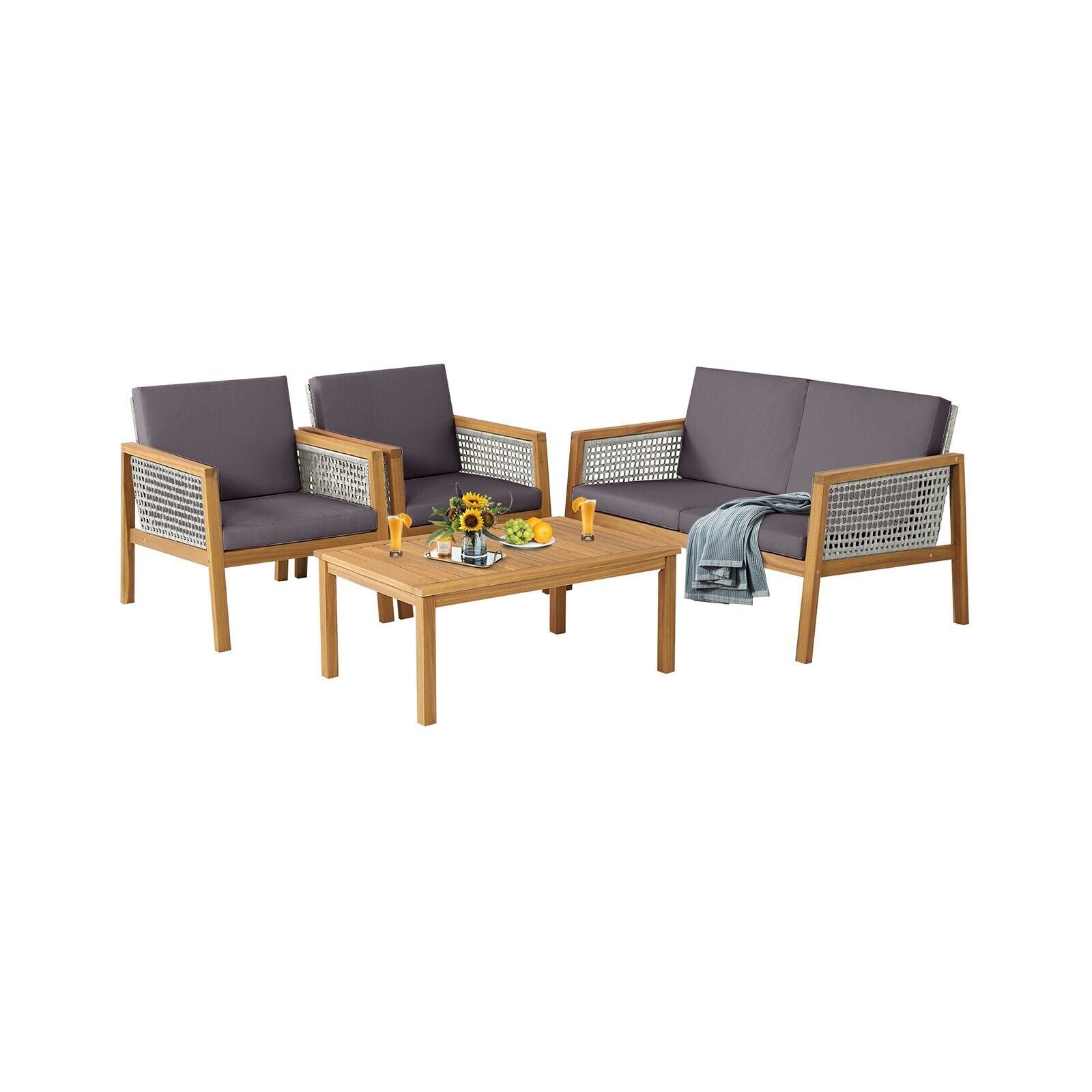 4Pcs Rattan Patio Garden Furniture Table Chairs Set Outdoor Furniture w/Cushions