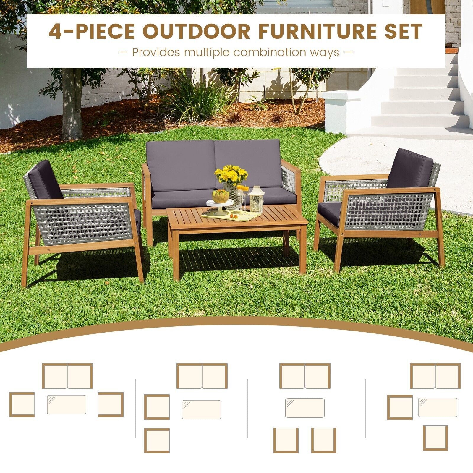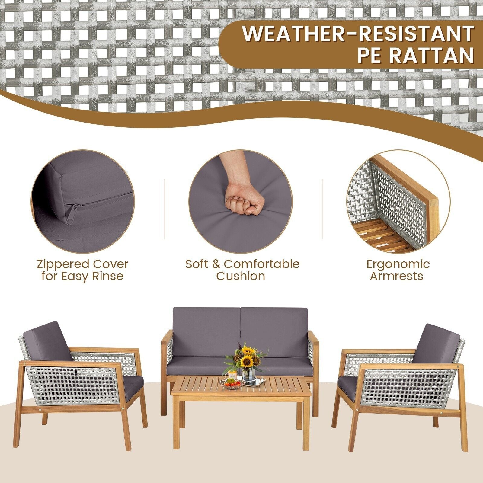 PE Rattan, Acacia Wood, Polyester, Cotton, Sponge