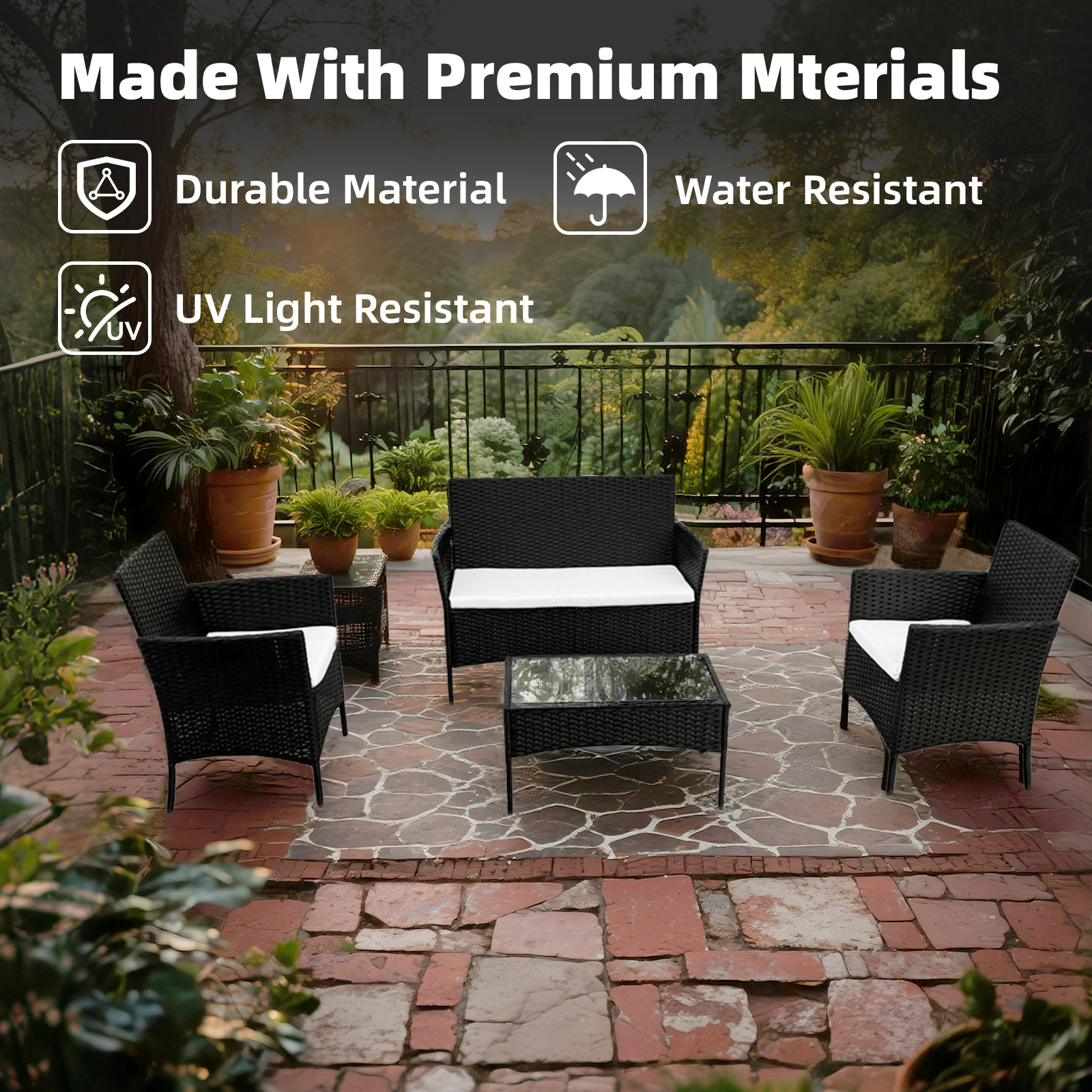 4PCS Rattan Sofa Set Garden Furniture Patio Weaving Wicker Conversation Table
