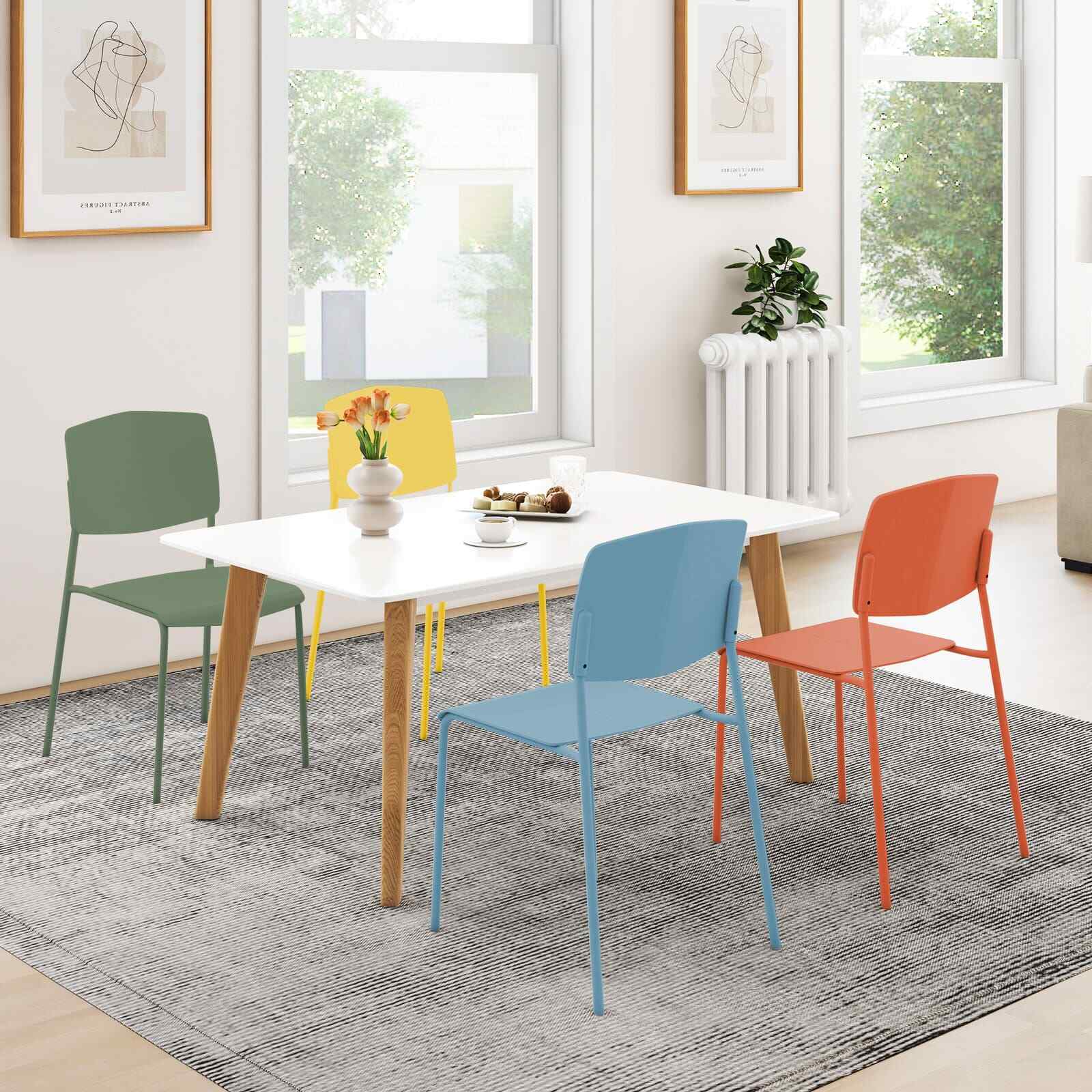 4Pcs Stackable Kitchen Chairs Set Modern Plastic Dining Room Chairs Color