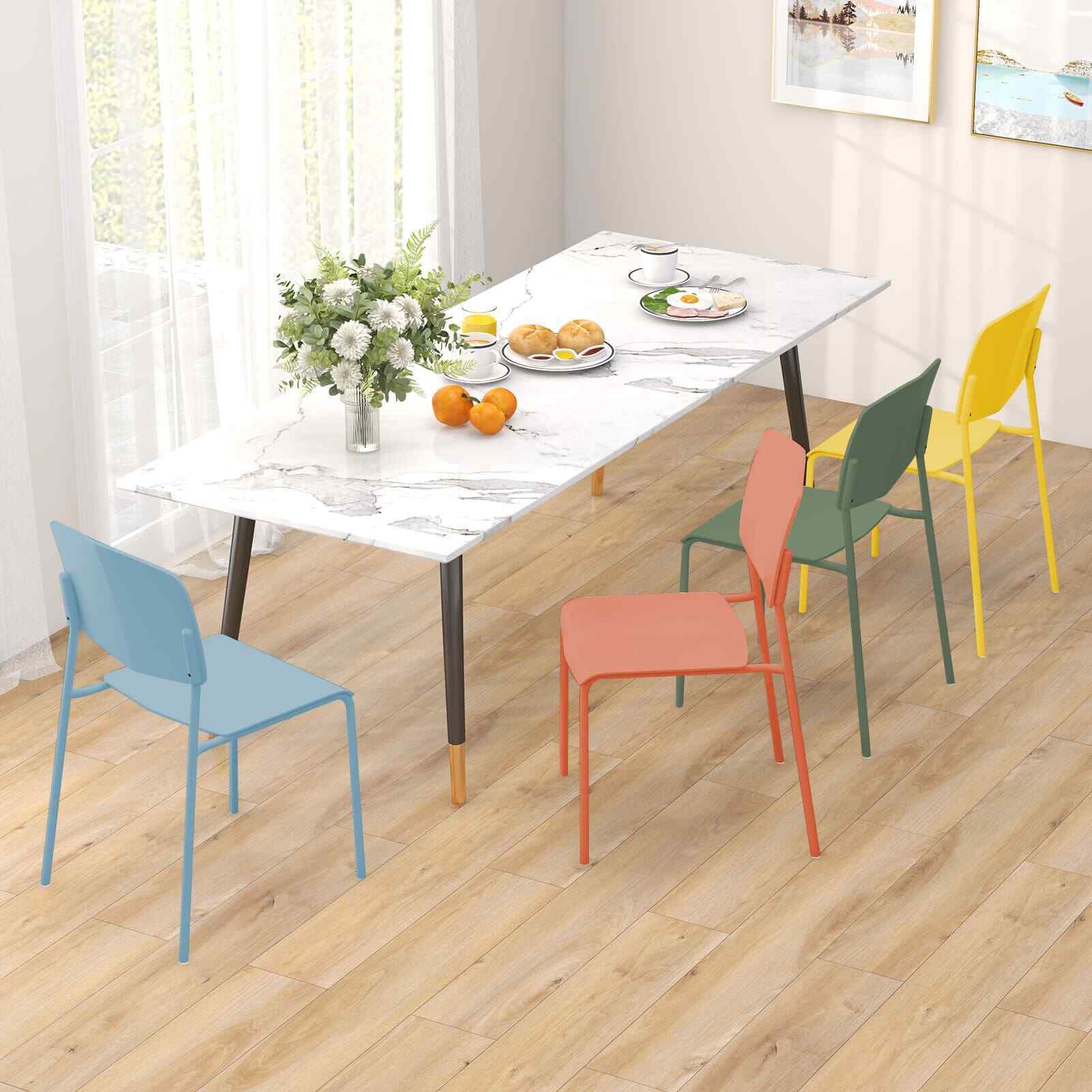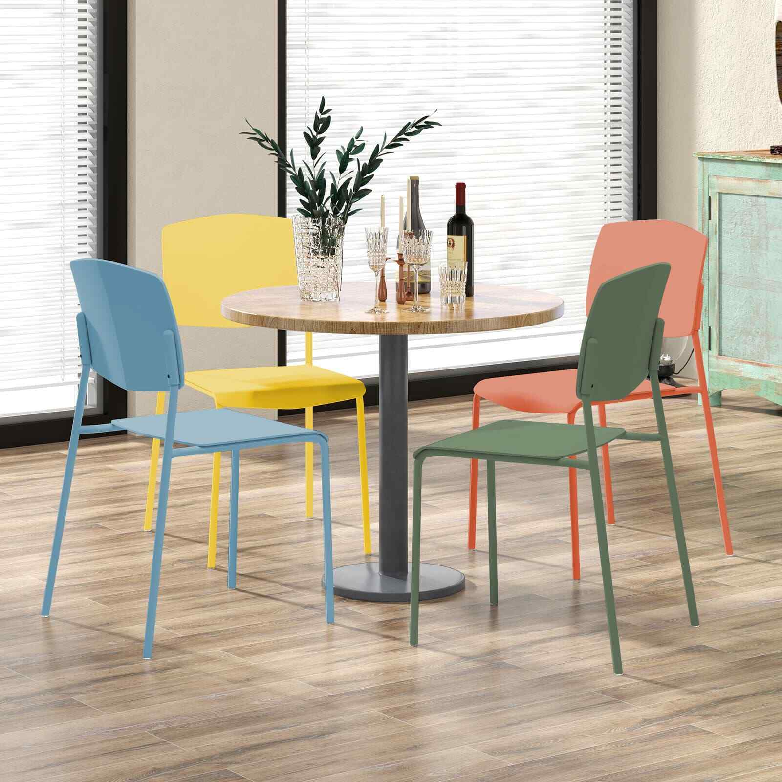 4Pcs Stackable Kitchen Chairs Set Modern Plastic Dining Room Chairs Color