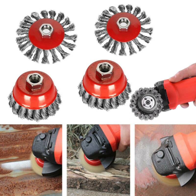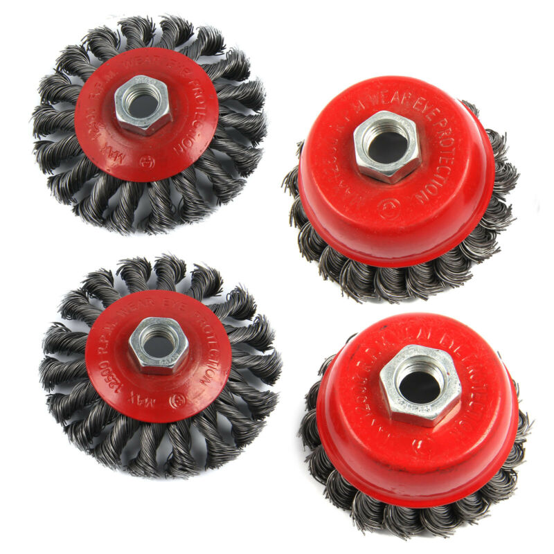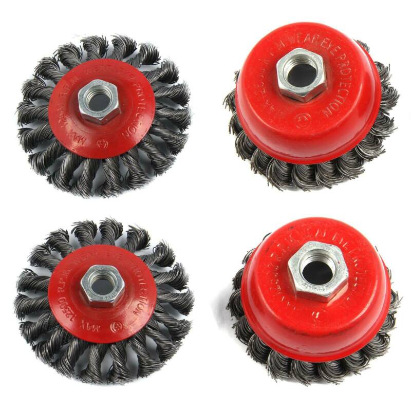 4pcs Twist Knot Semi Flat Wire Wheel Cup Brush Set Kit For 115mm Angle Kits UK