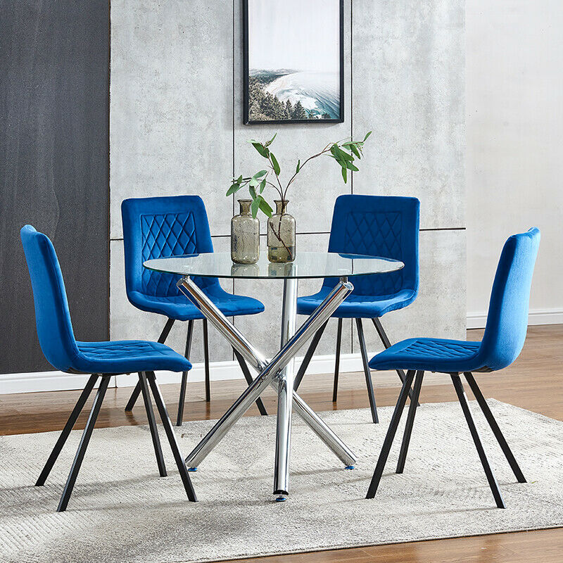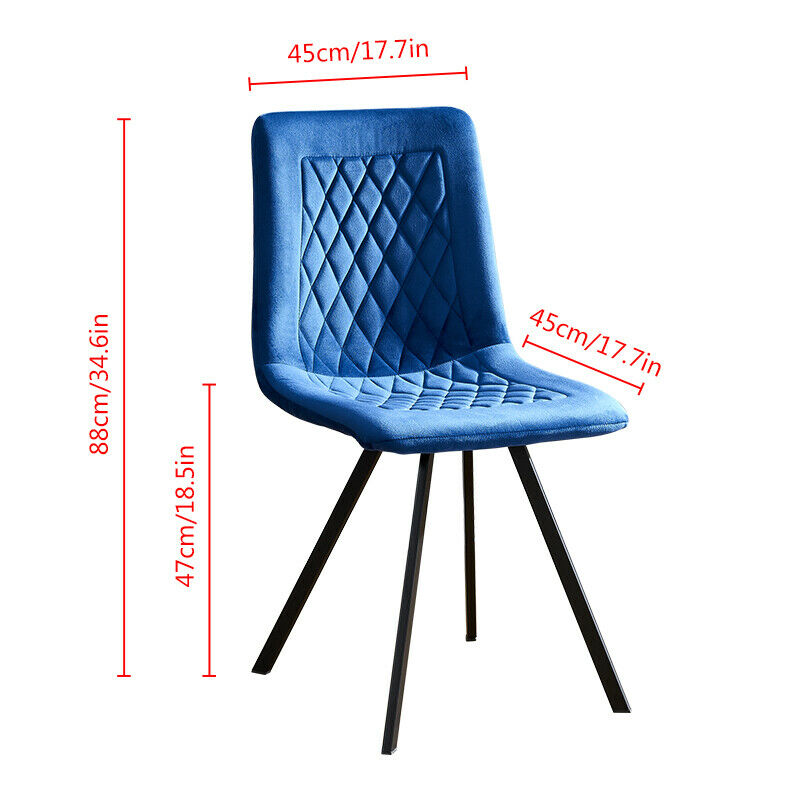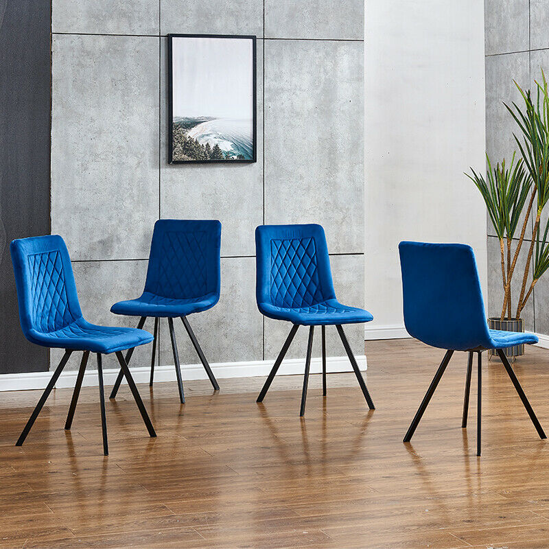 4Pcs Velvet Dining Chairs Metal Leg Padded Dining Room Kitchen Office Blue Color