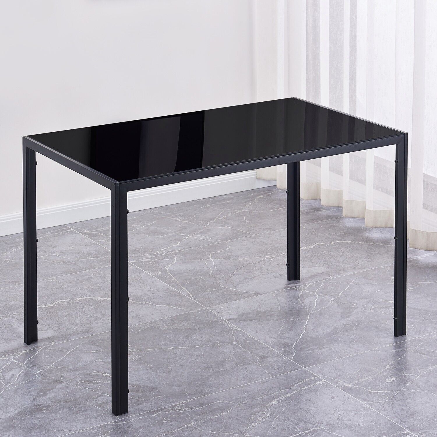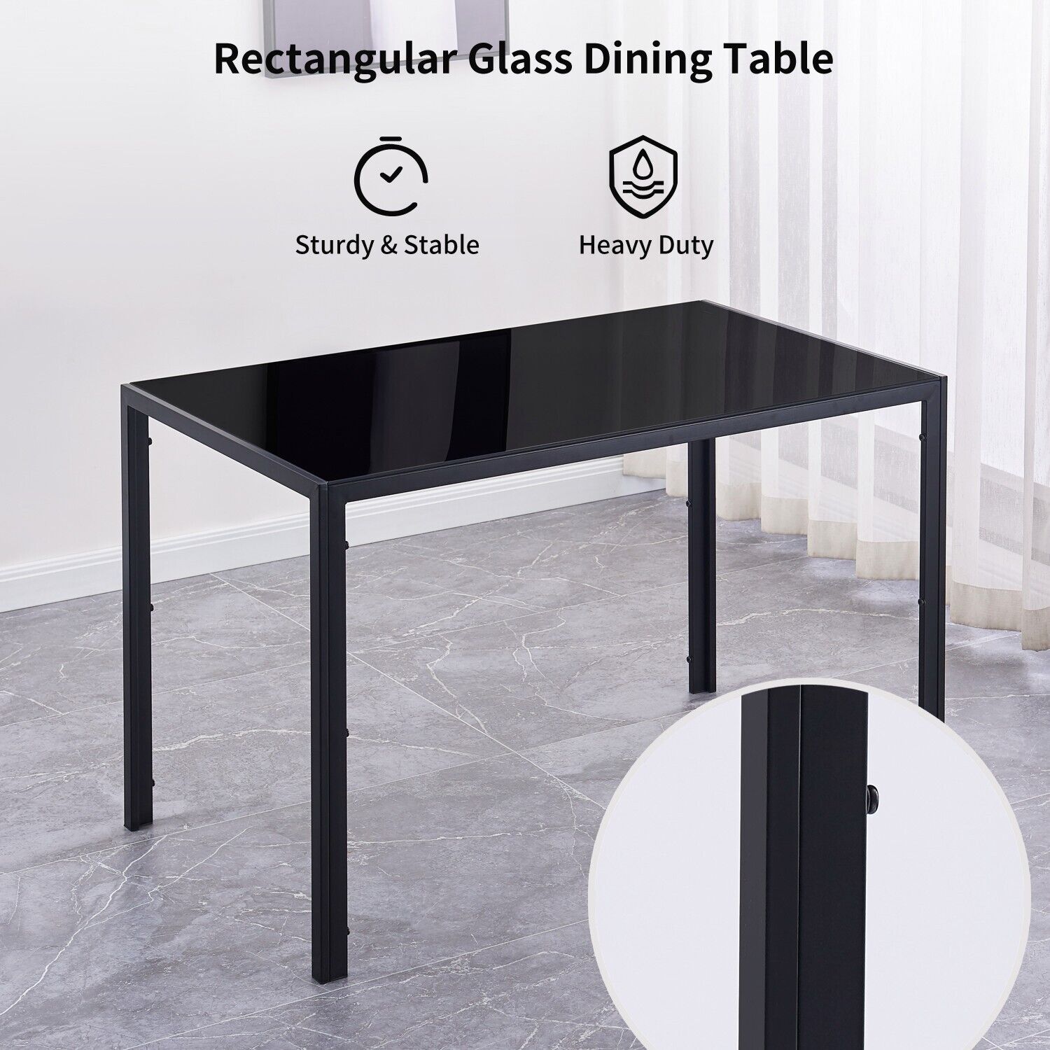 4pcs White Faux Leather Dining Chairs & Black Tempered Glass Dining Table Set