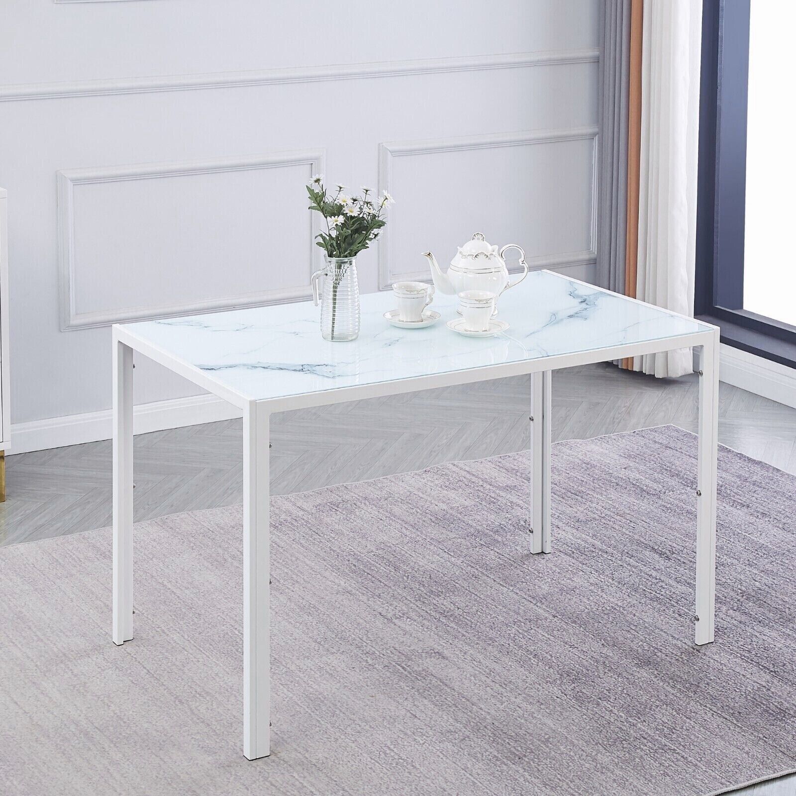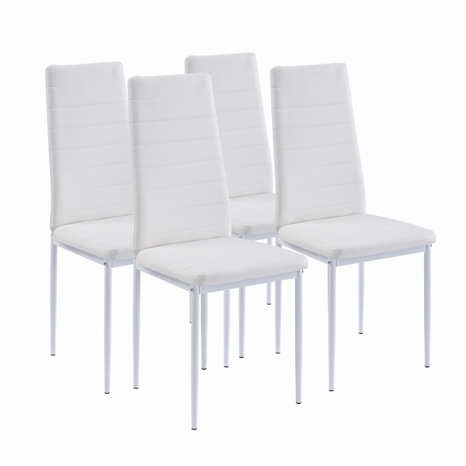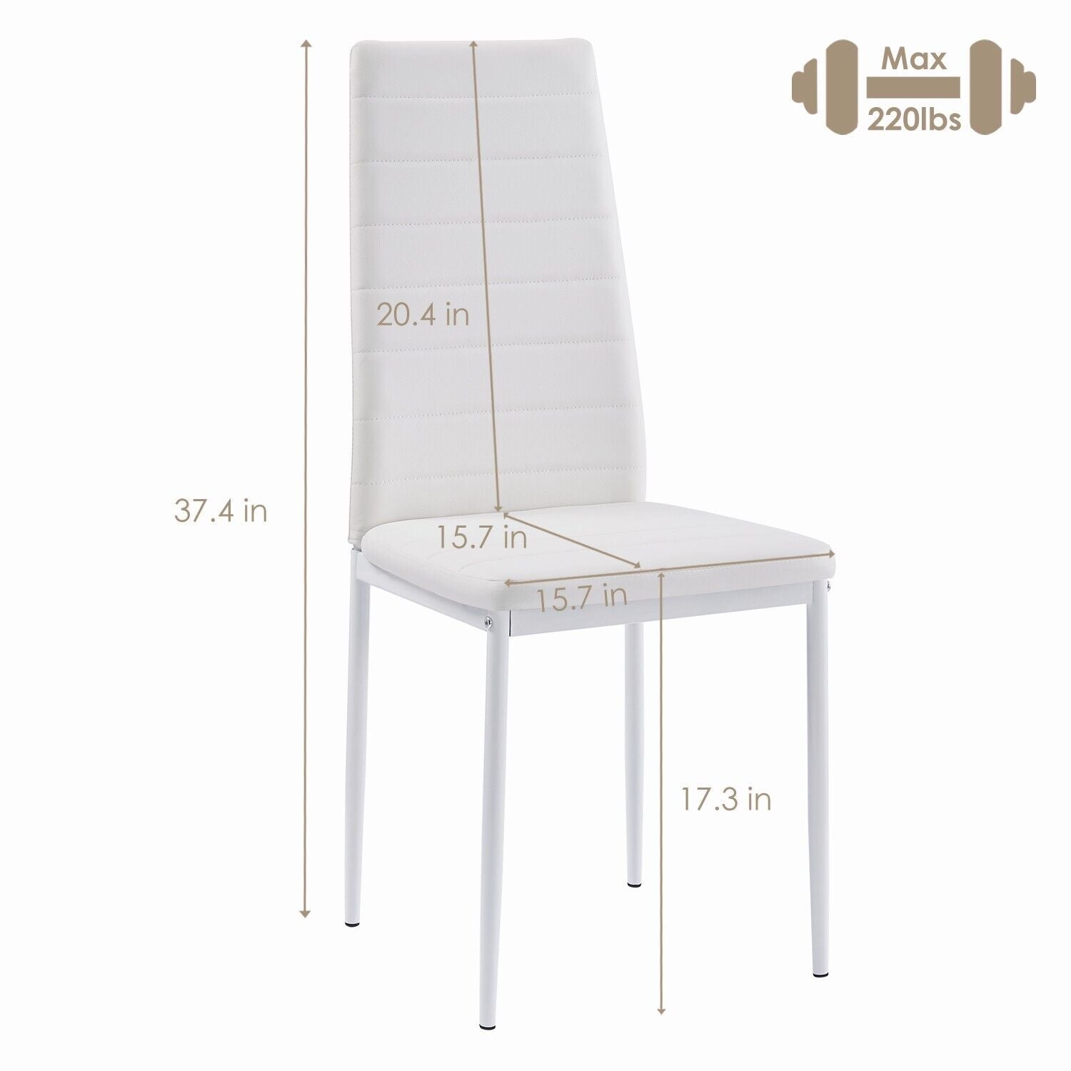 4pcs White Faux Leather Dining Chairs & Grey Tempered Glass Dining Table Set