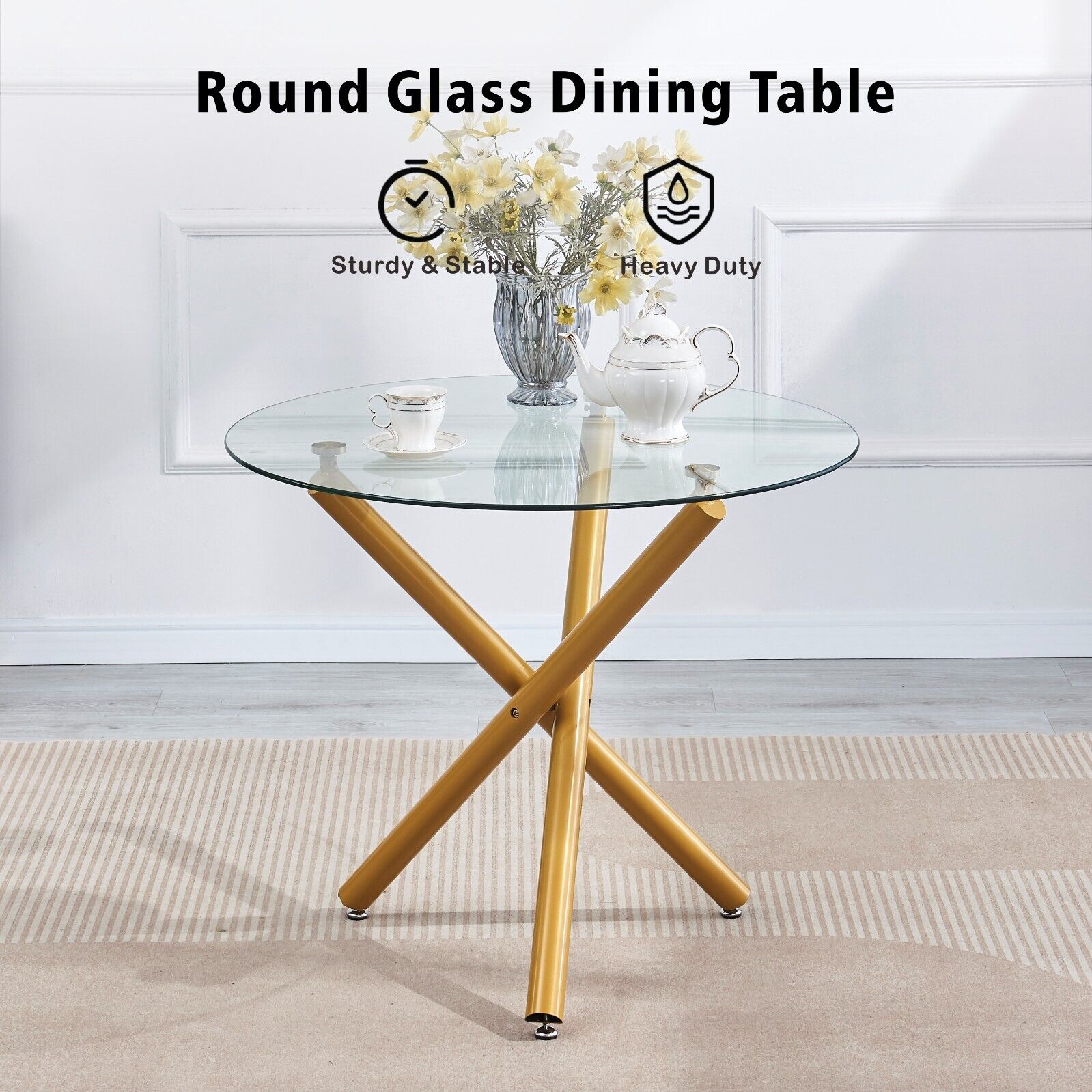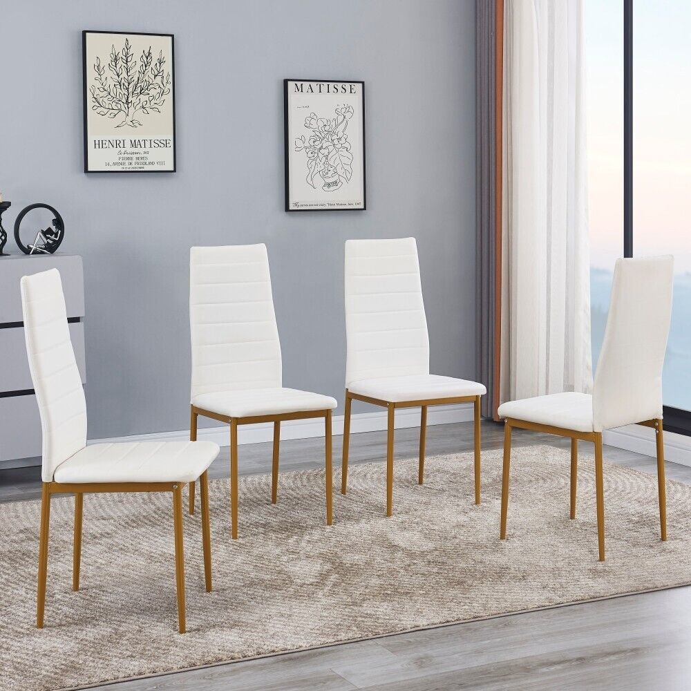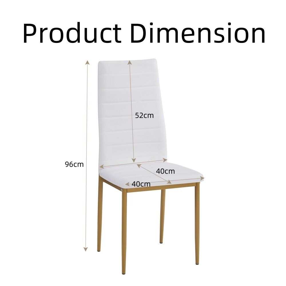 4pcs White Faux Leather Dining Chairs & Round Glass Dining Table Golden Legs Set