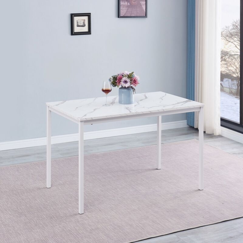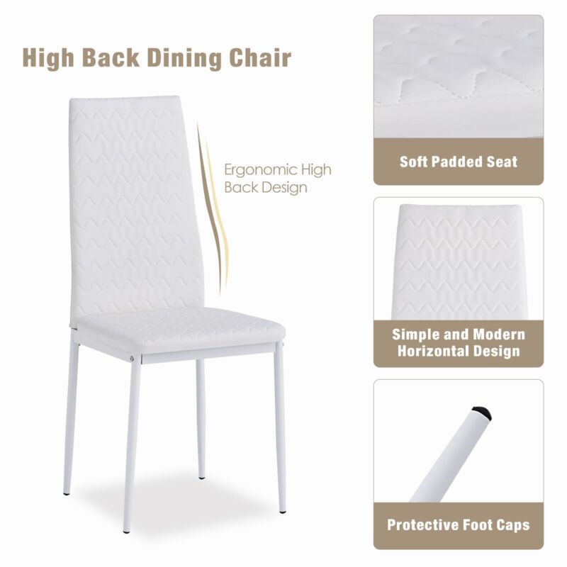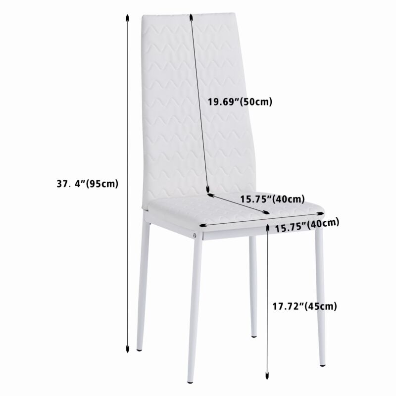 4pcs White Faux Leather Dining Chairs & White Marble MDF Top Dining Table Set