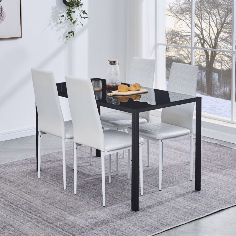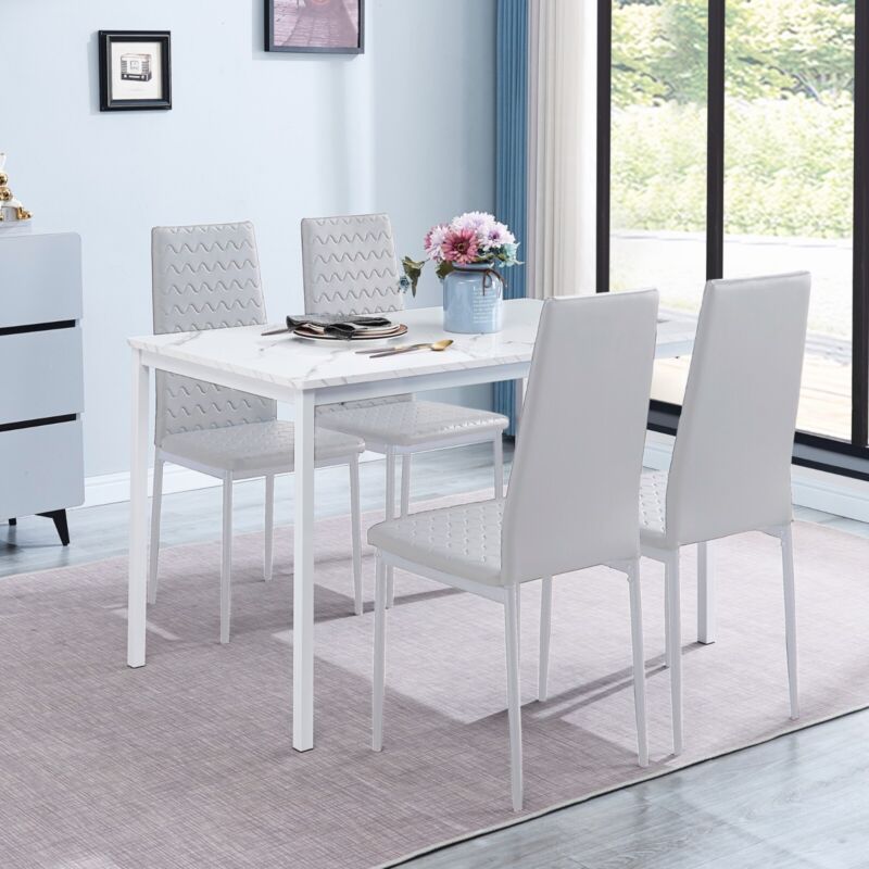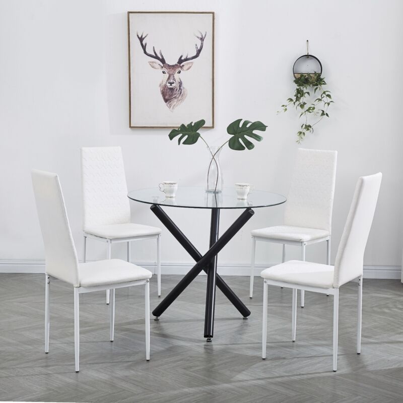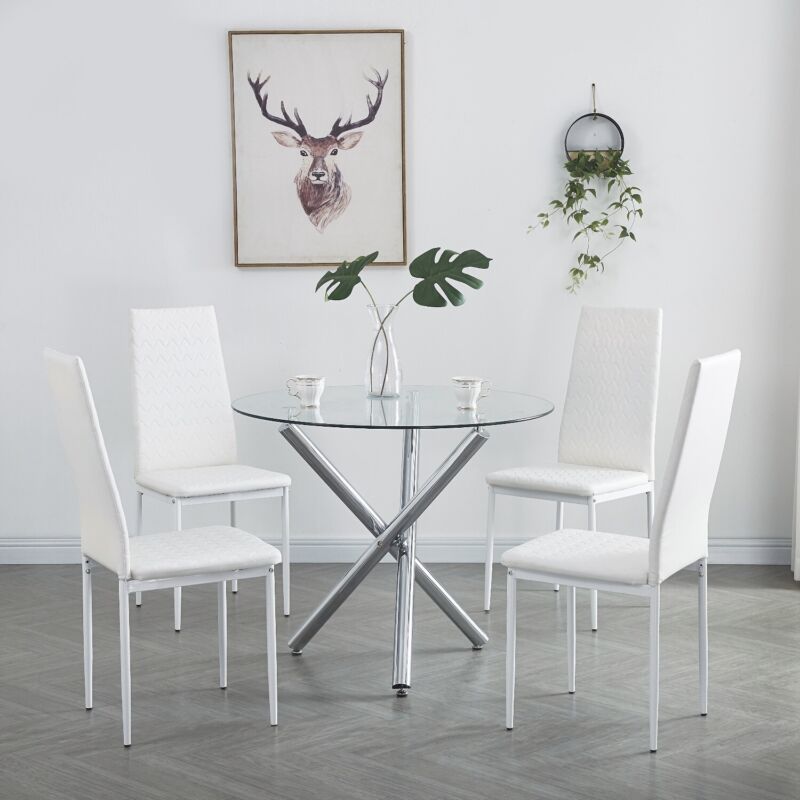 4pcs White Faux Leather High Back Dining Chairs Metal Legs Dining Room Kitchen