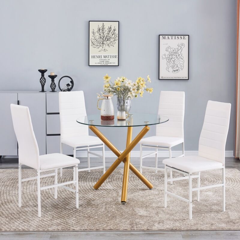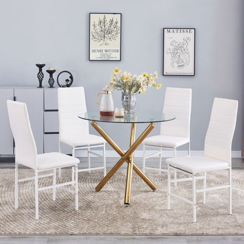 4pcs White High Back Faux Leather Dining Chairs Footrest Bar Kitchen Dining Room