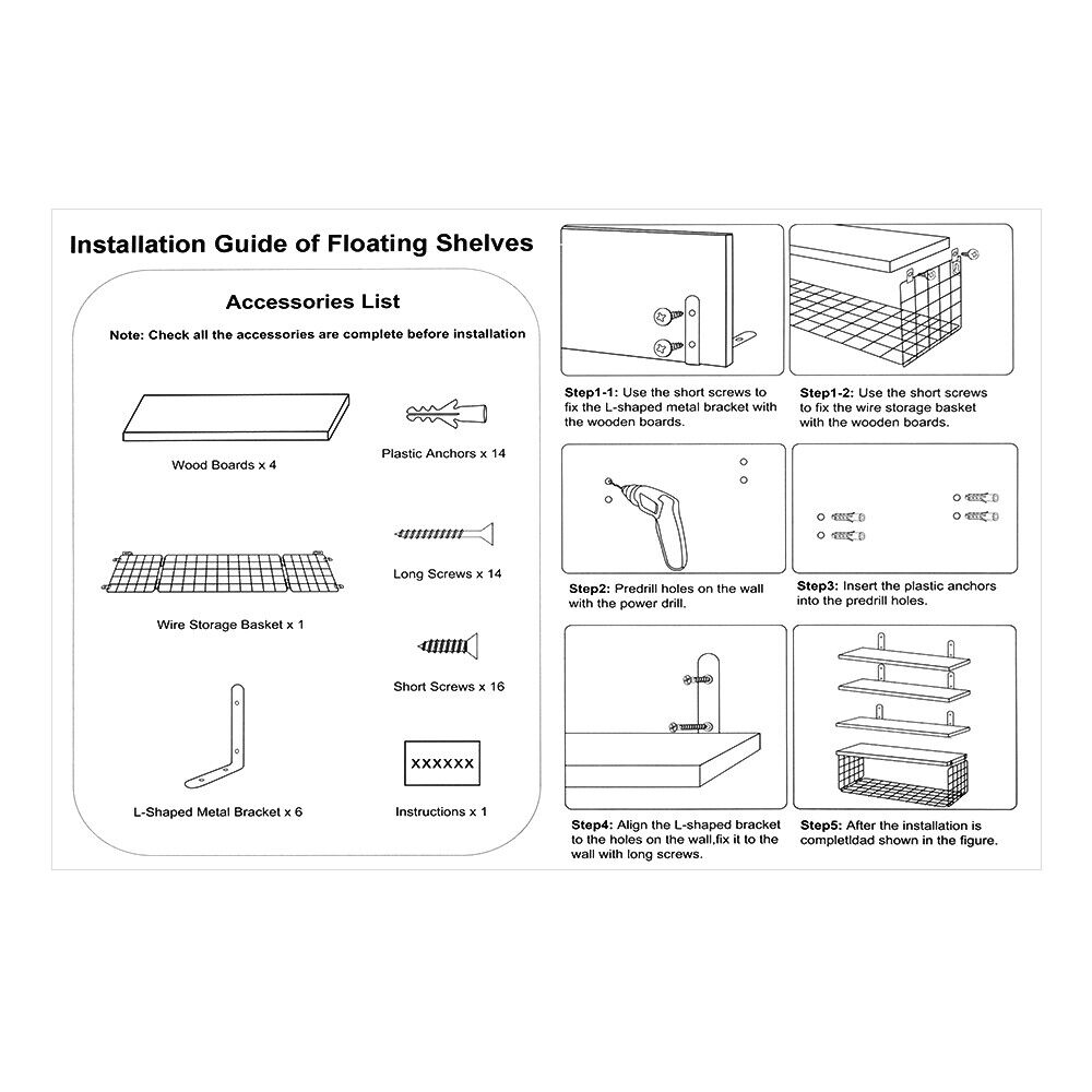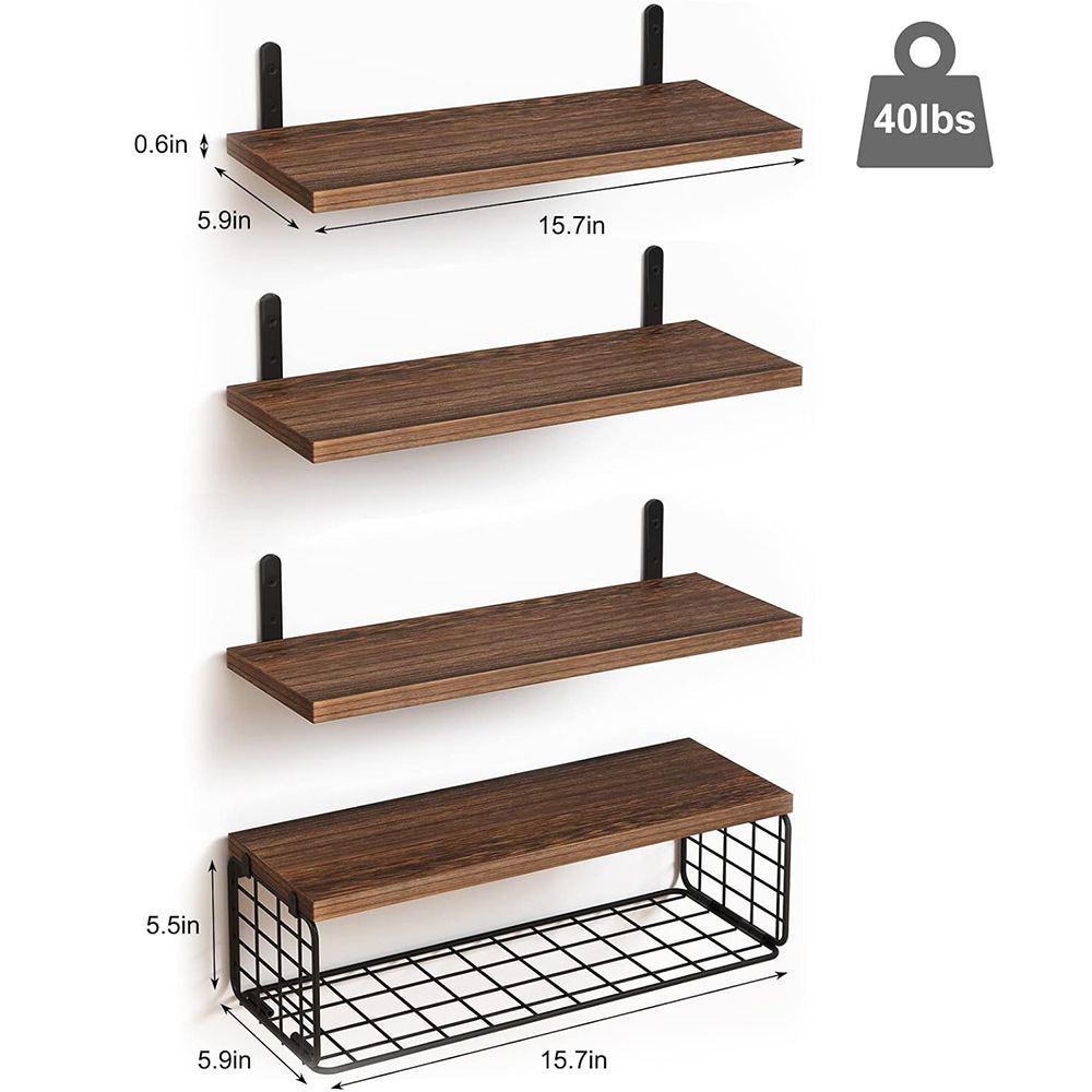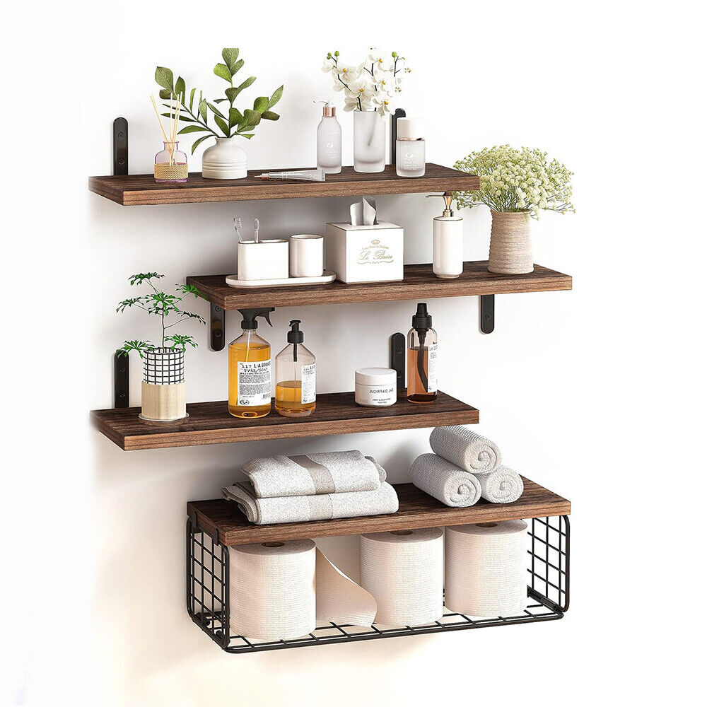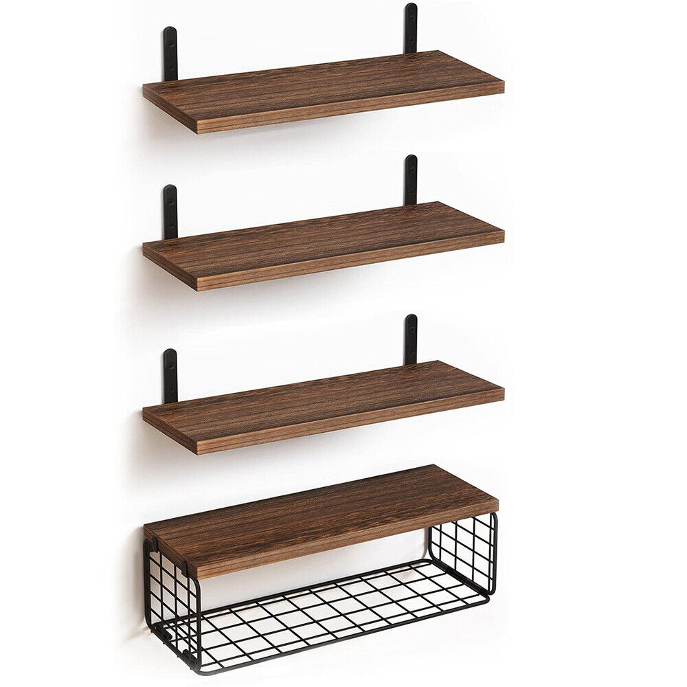 4Pcs Wooden Floating Shelves Wall Mounted Display Unit Shelf Storage Rack Decor