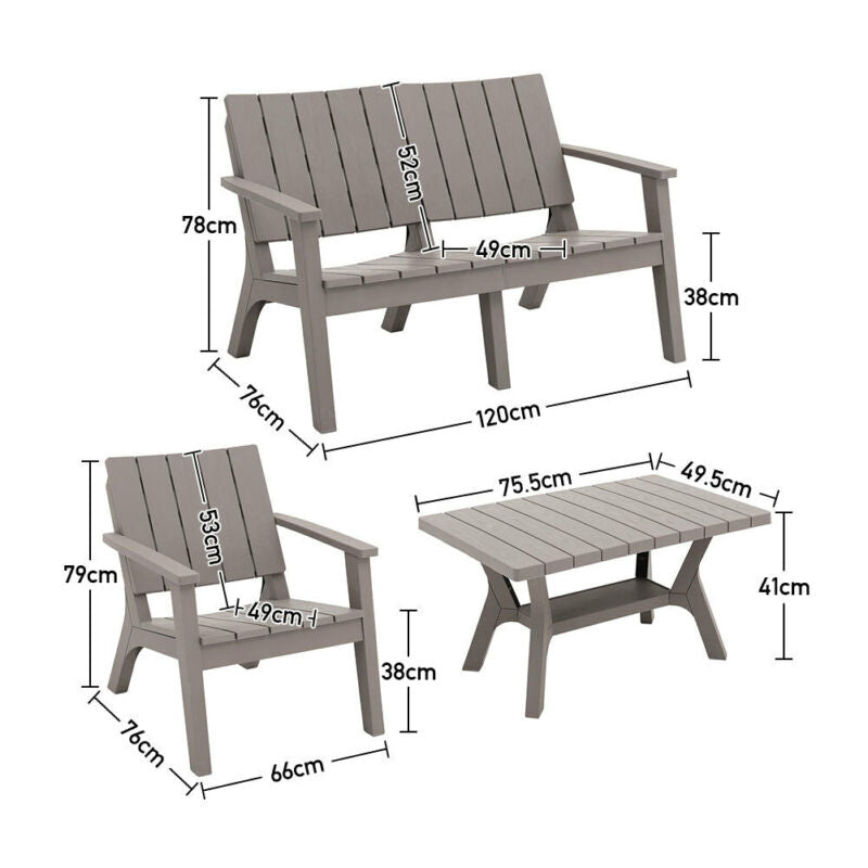 Condition: New: A brand-new, unused, unopened and undamaged item in original retail packaging (where packaging ... Material: Plastic Type: Lounge Set Brand: new-garden Tabletop Material: Plastic Set Includes: Chairs, Table, 2 Seater Sofa Chair Colour: Coffee Colour: Coffee Cushions Included: No Number of Items in Set: Four-Piece Table Length: 75.5 cm Table Width: 49.5 cm Table Height: 41 cm Assembly Required: Yes Chair Height: 78 cm Chair Width: 120/66 cm Chair Depth: 76 cm Seat Depth: 49 cm Seat Height: 38 cm MPN: Does Not Apply Model: Garden Furniture Set Chair Back Material: Plastic Seating Capacity: Up to 6 Features: Storage, With Armrest, With Backrest Table Shape: Square Style: Modern Finish: Slate Personalised: No Department: Adults, Children Custom Bundle: No EAN: Does not apply