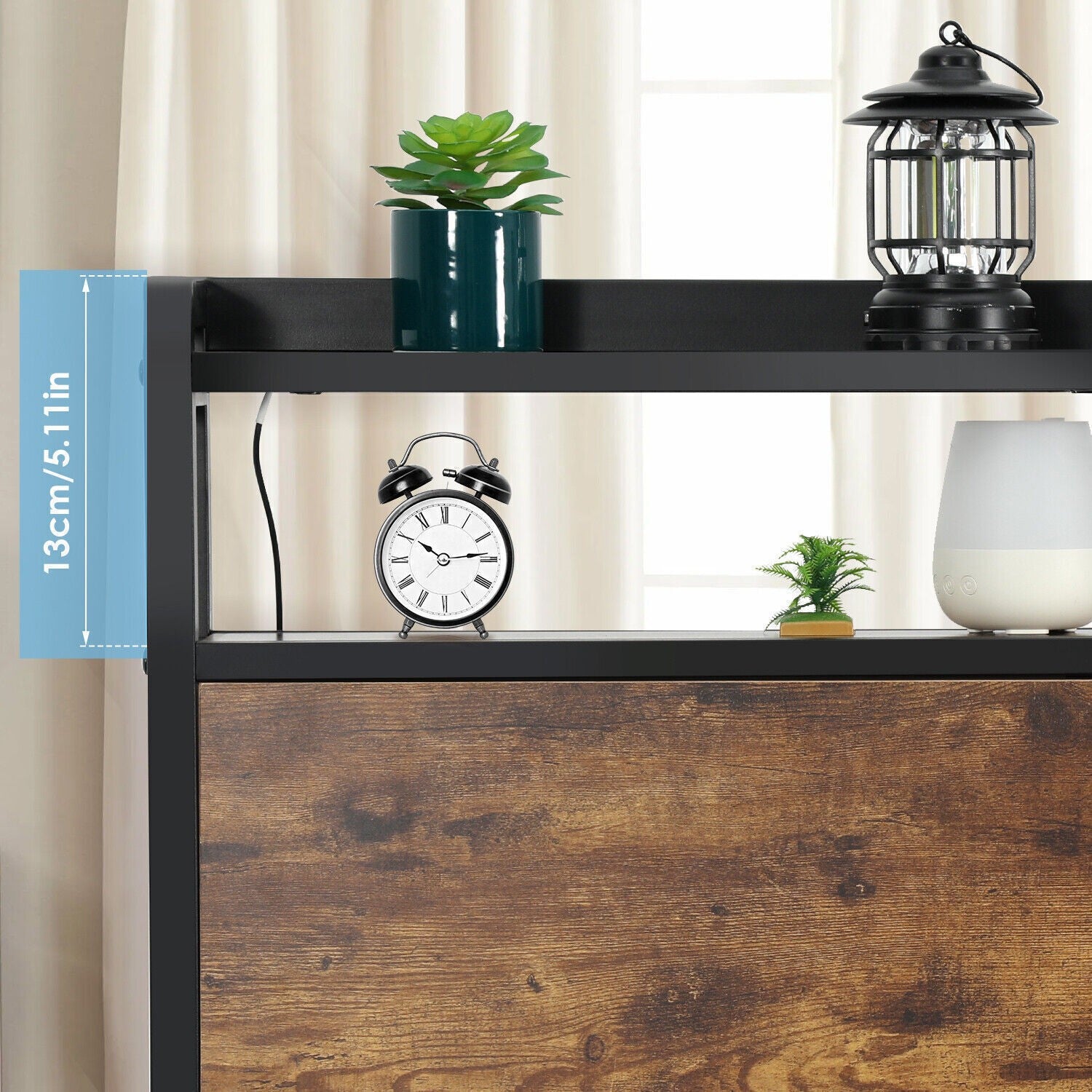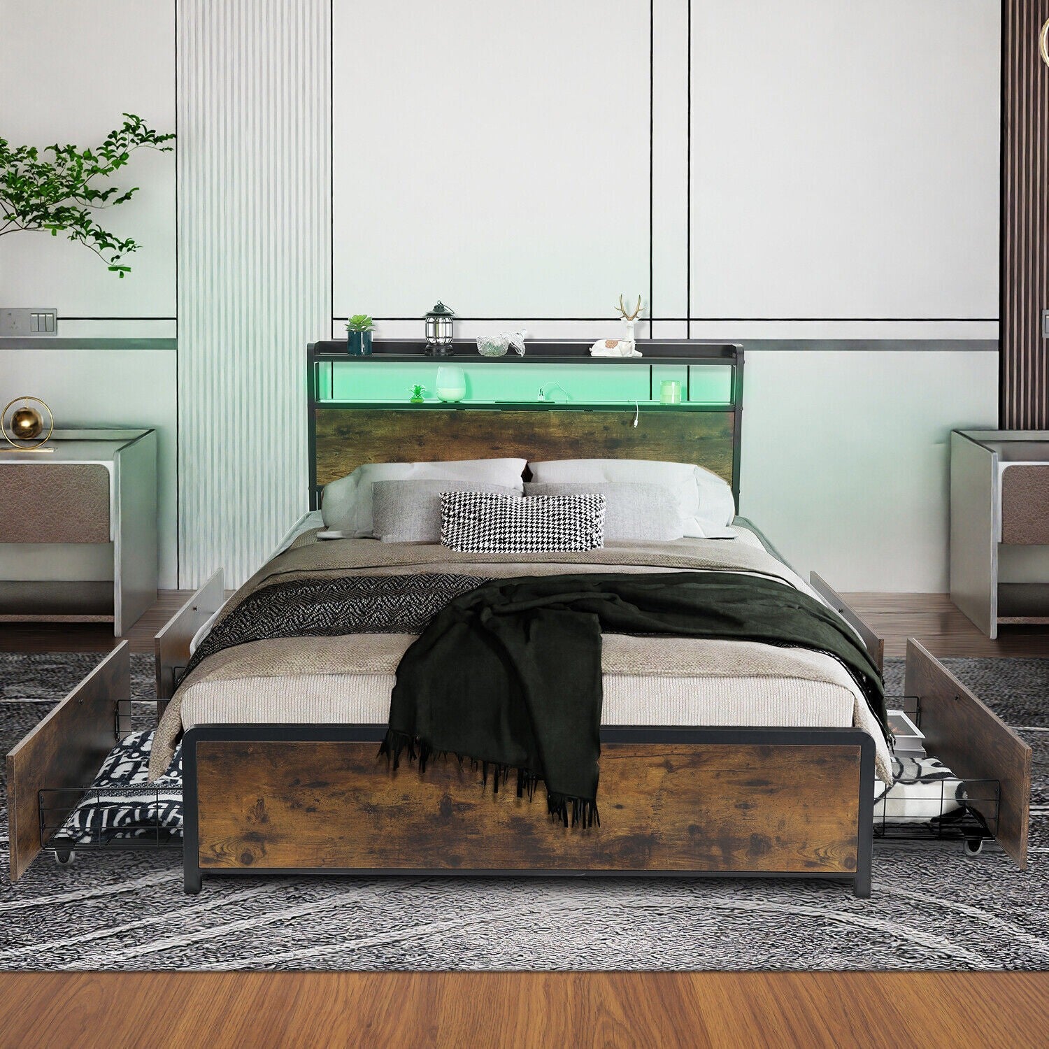 4TF6 Double Size Bed Frame Bed Platform LED Lights Retro Headboard & 4 Pvhzgmmru