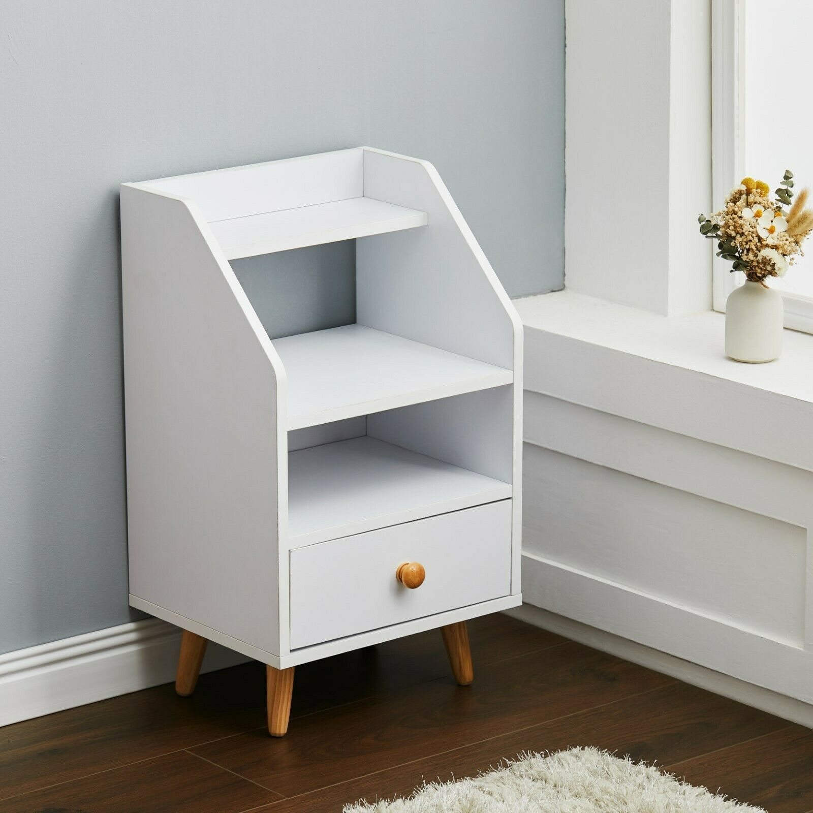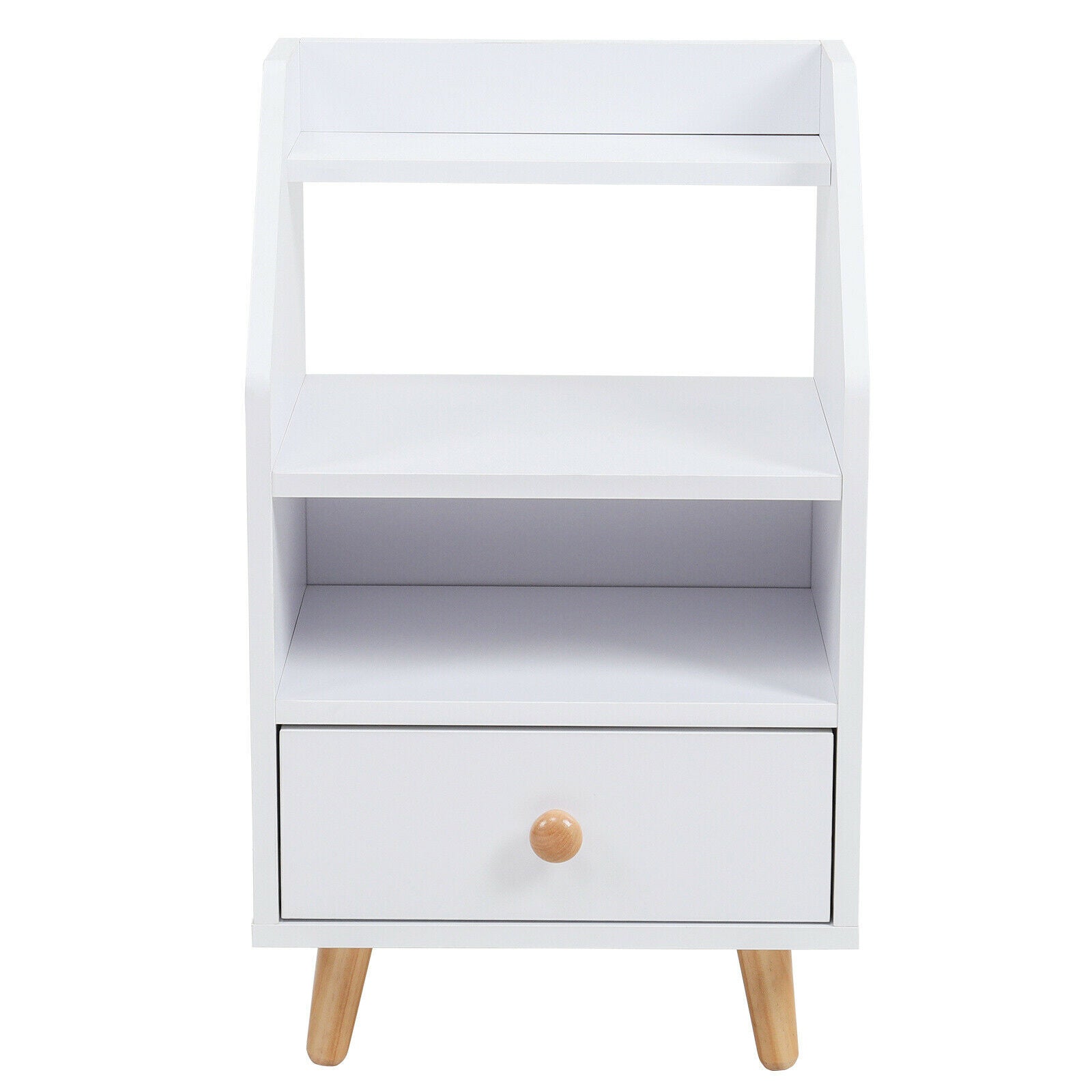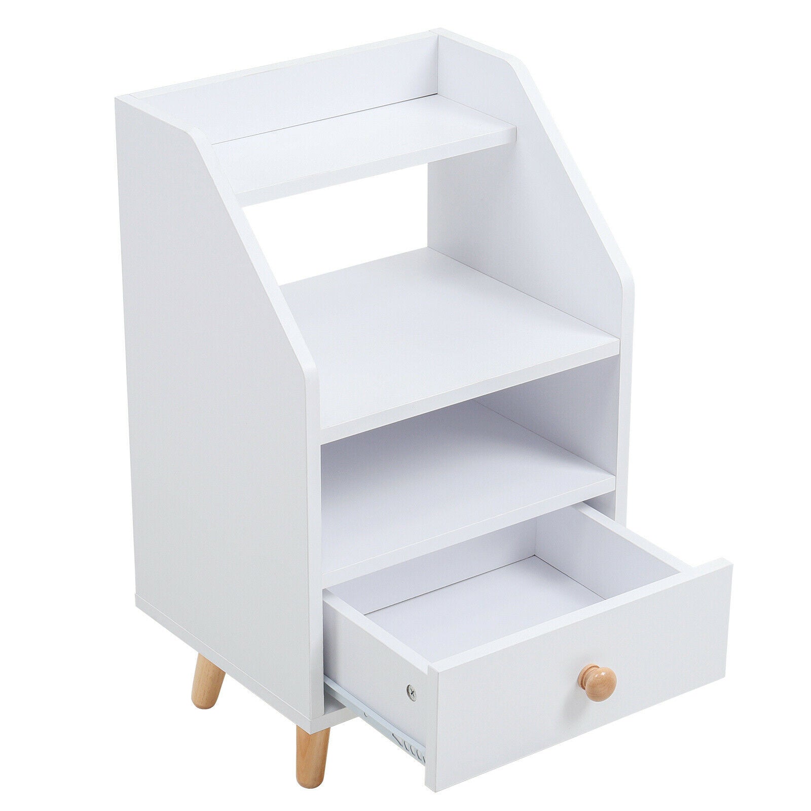 4Tier White Nightstand Bedside Table Side End for Small Space Open Storage Shelf
