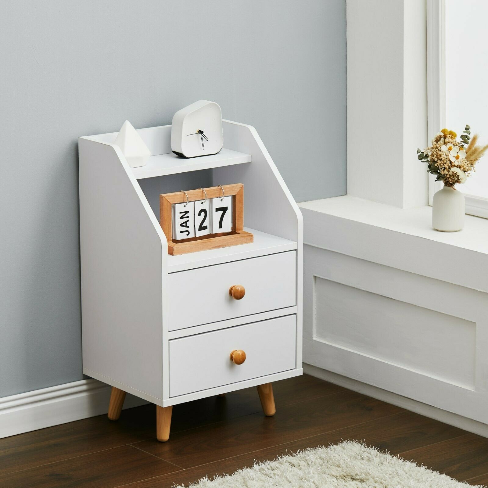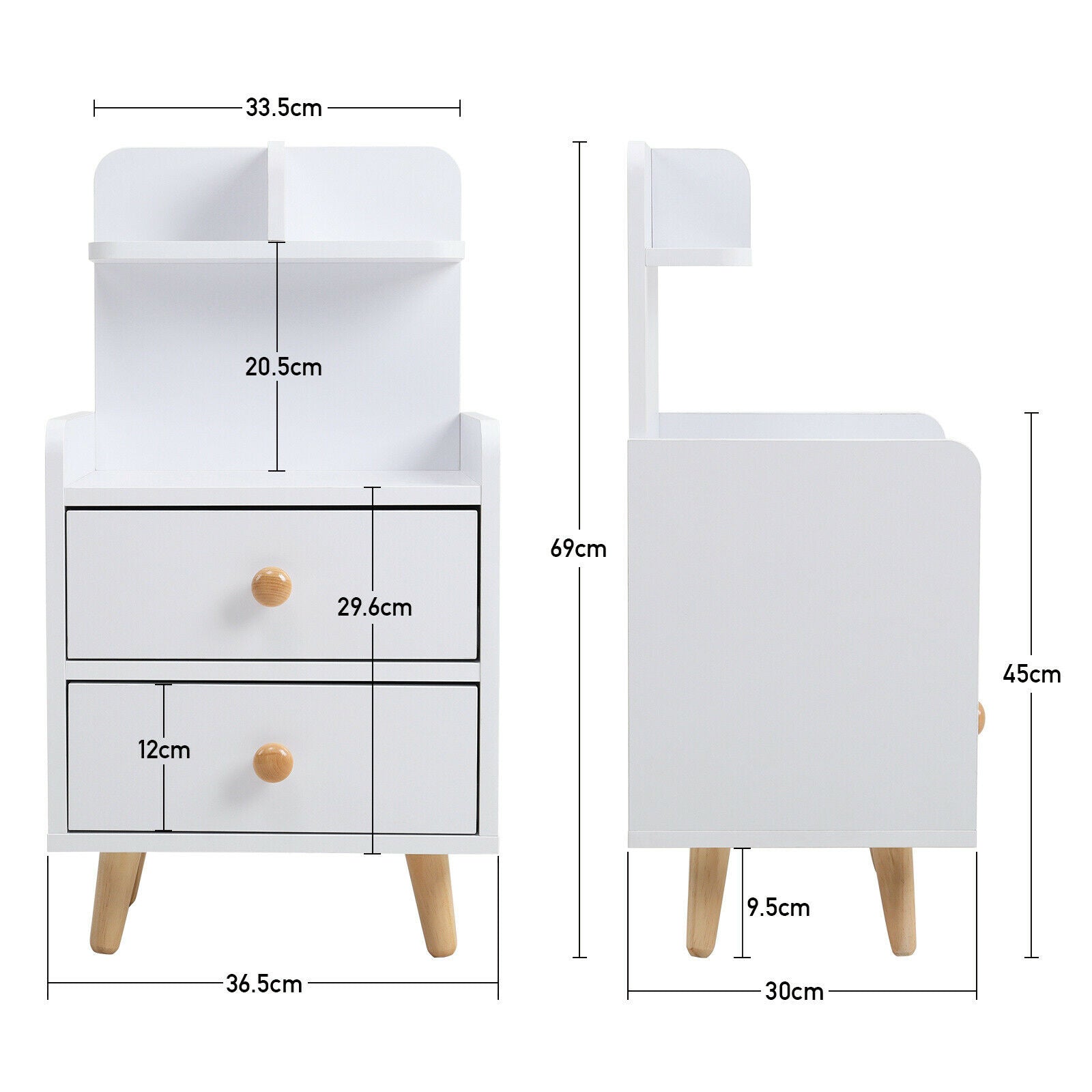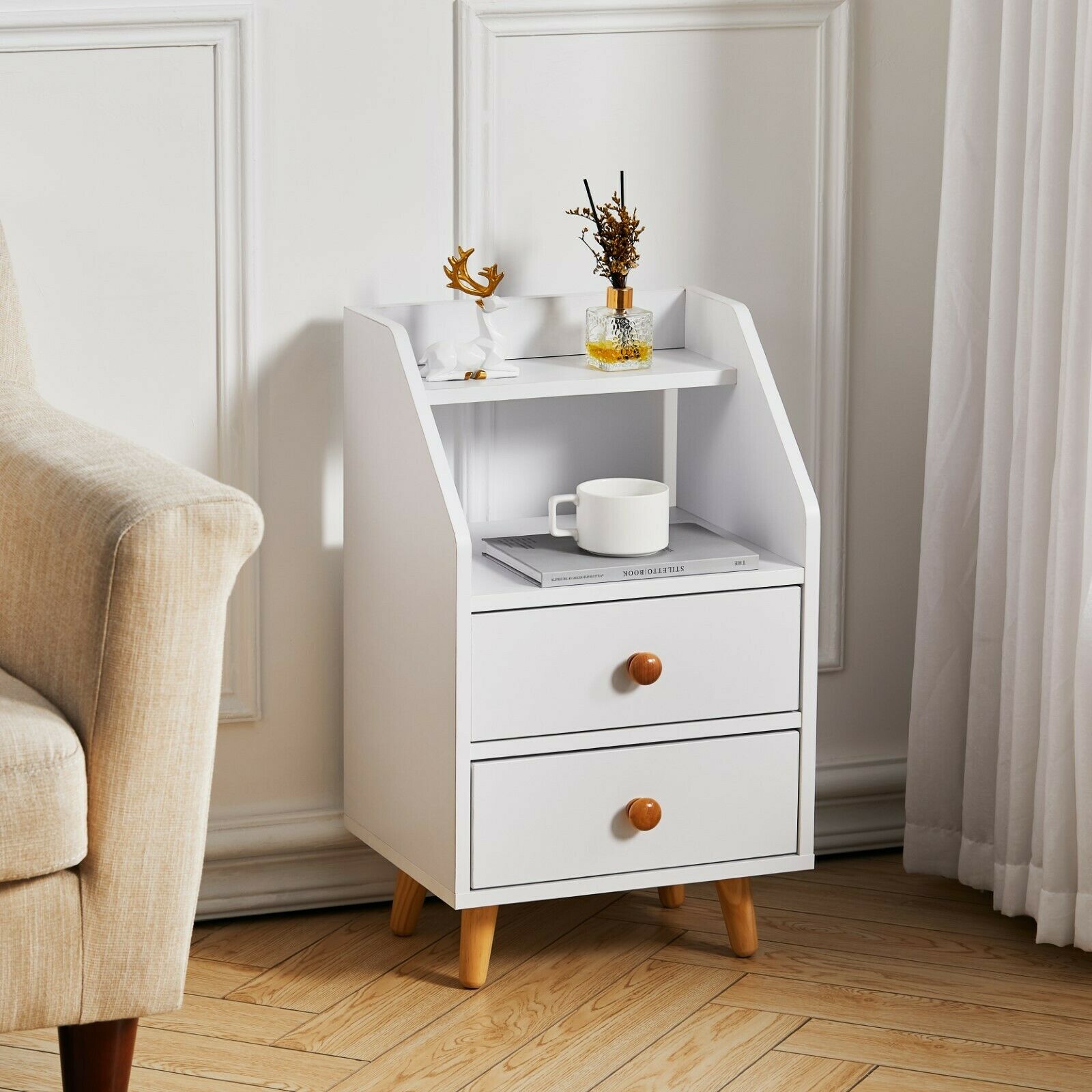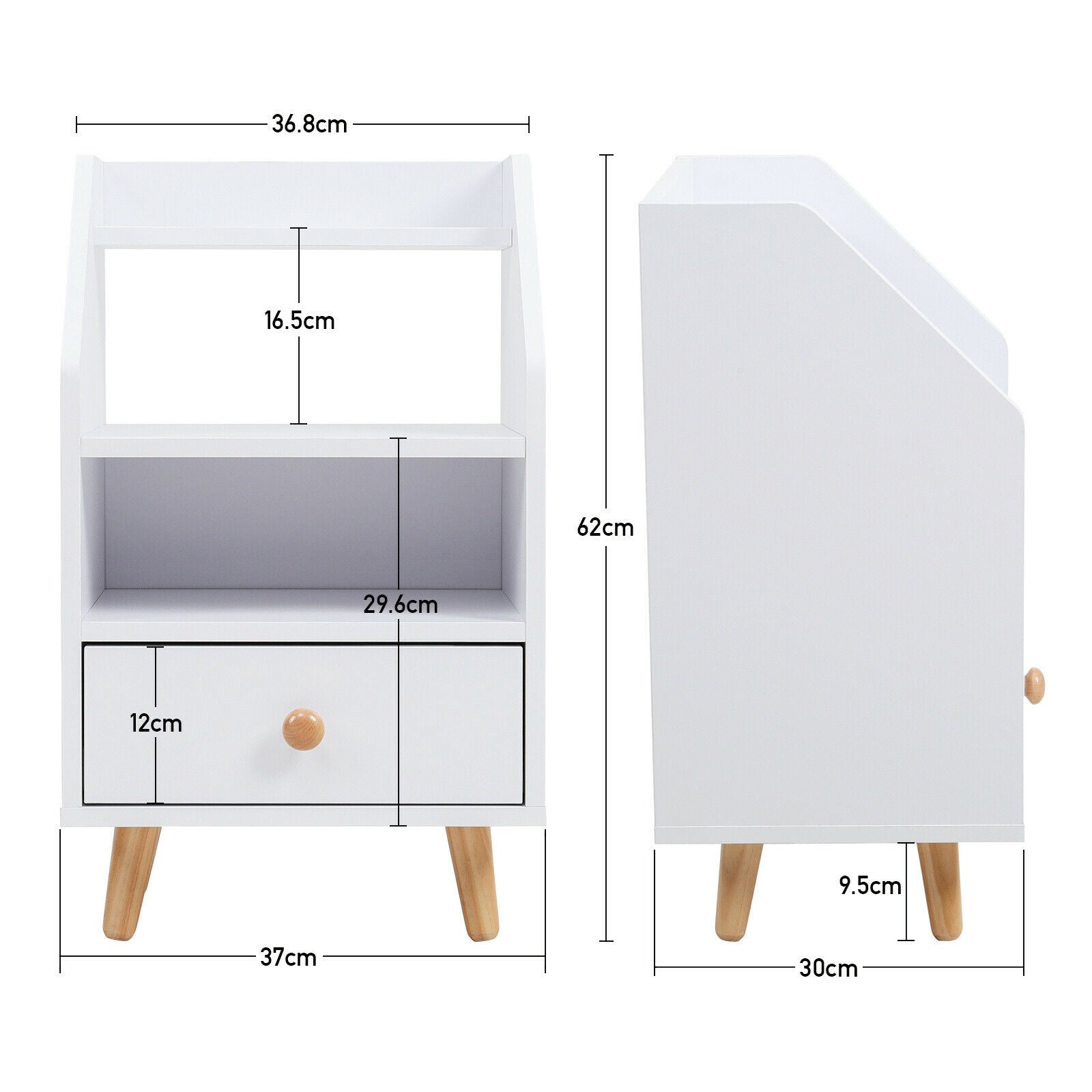4Tier White Nightstand Bedside Table Side End for Small Space Open Storage Shelf