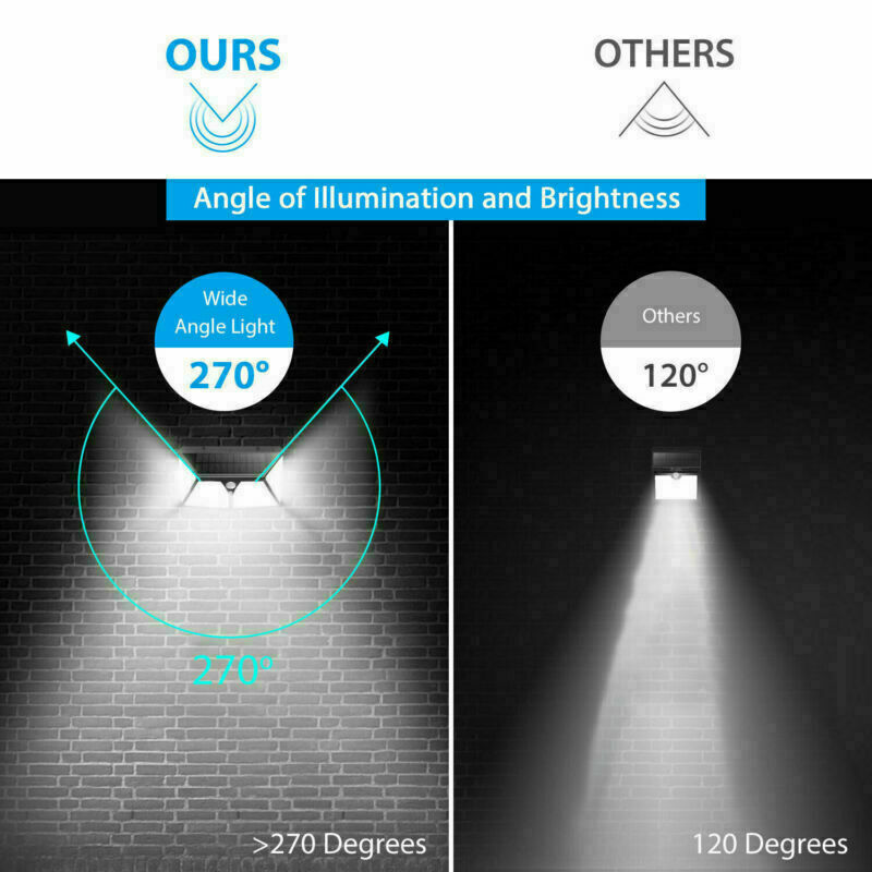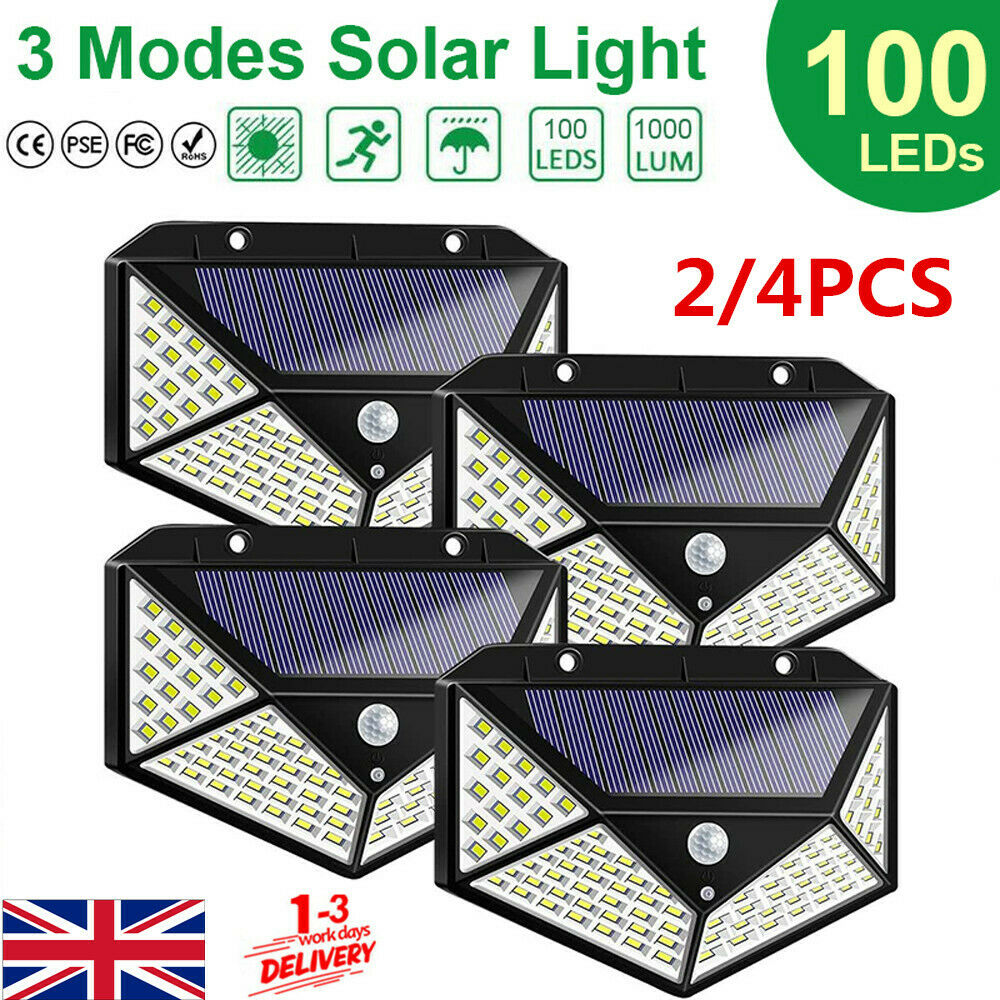 4X 100LED Solar Power PIR Motion Sensor Wall Lights Outdoor Garden Security Lamp