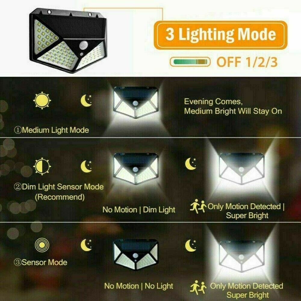 4X 100LED Solar Power PIR Motion Sensor Wall Lights Outdoor Garden Security Lamp
