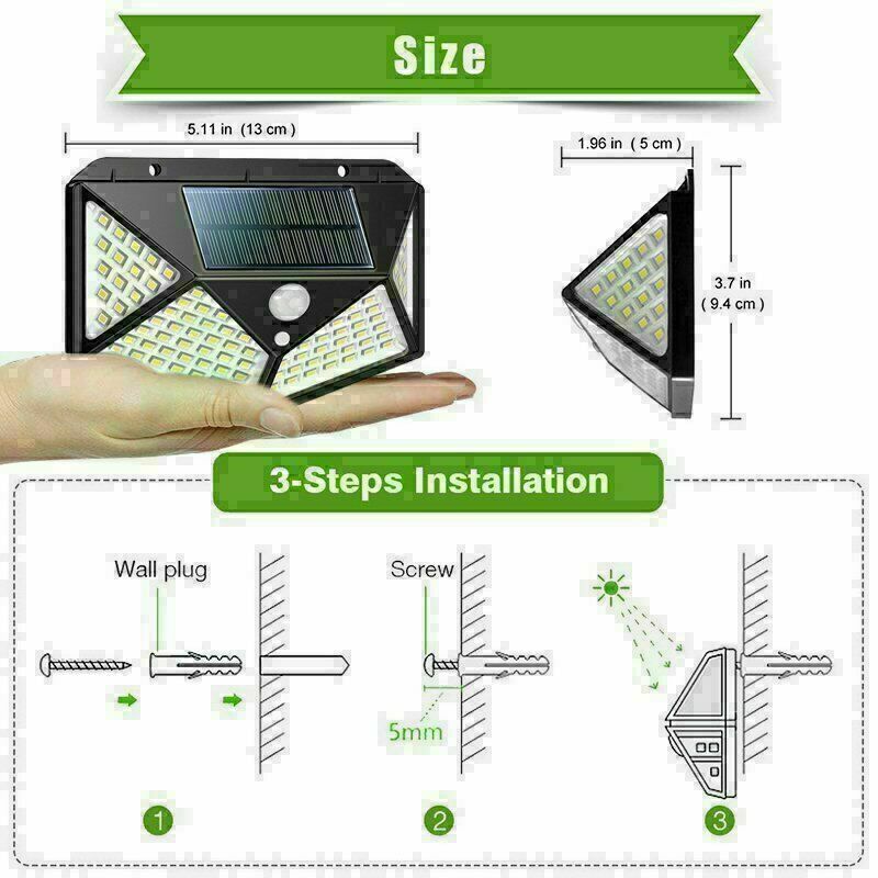 4X 100LED Solar Power PIR Motion Sensor Wall Lights Outdoor Garden Security Lamp