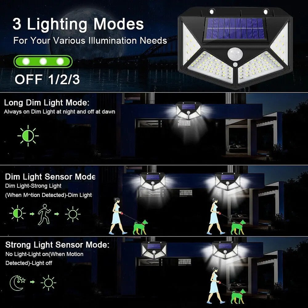 4X 100LED Solar Power PIR Motion Sensor Wall Lights Outdoor Garden Security Lamp