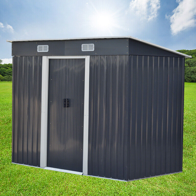 4x 8ft Shed Galvanized Metal Storage Garden Shed Tools Bicycle Store Anthracite