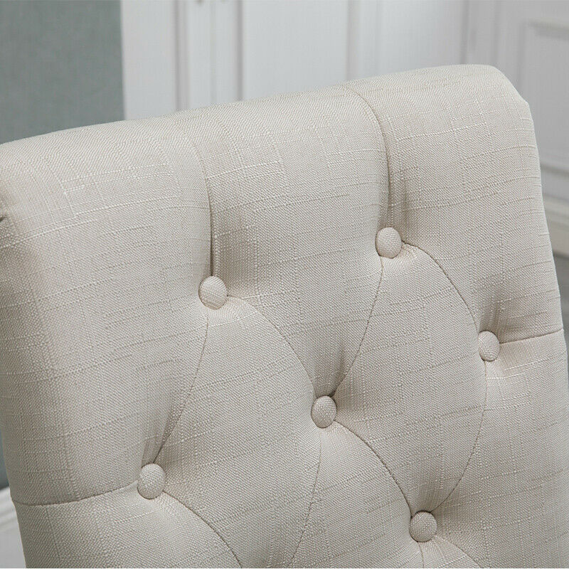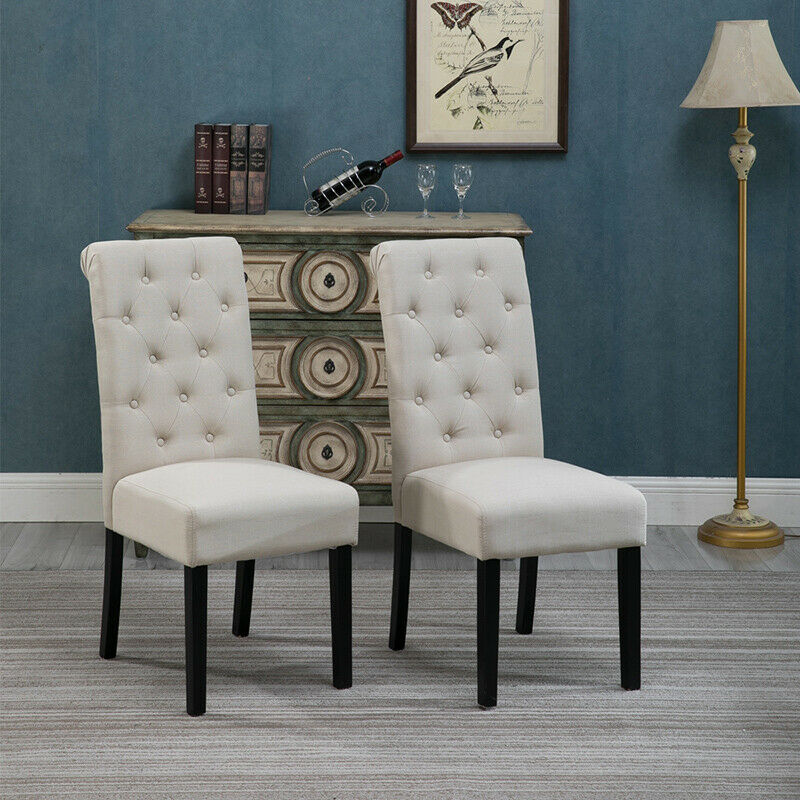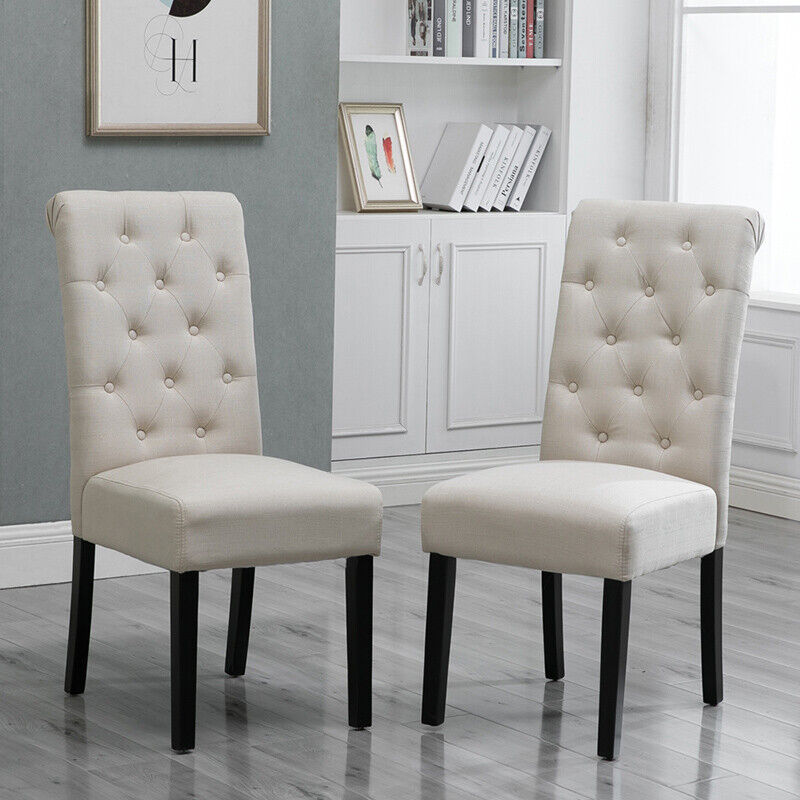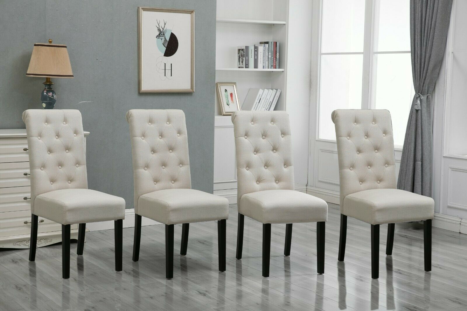 4x Beige Button Tufted High Back Dining Chairs Fabric Upholstered Kitchen Room