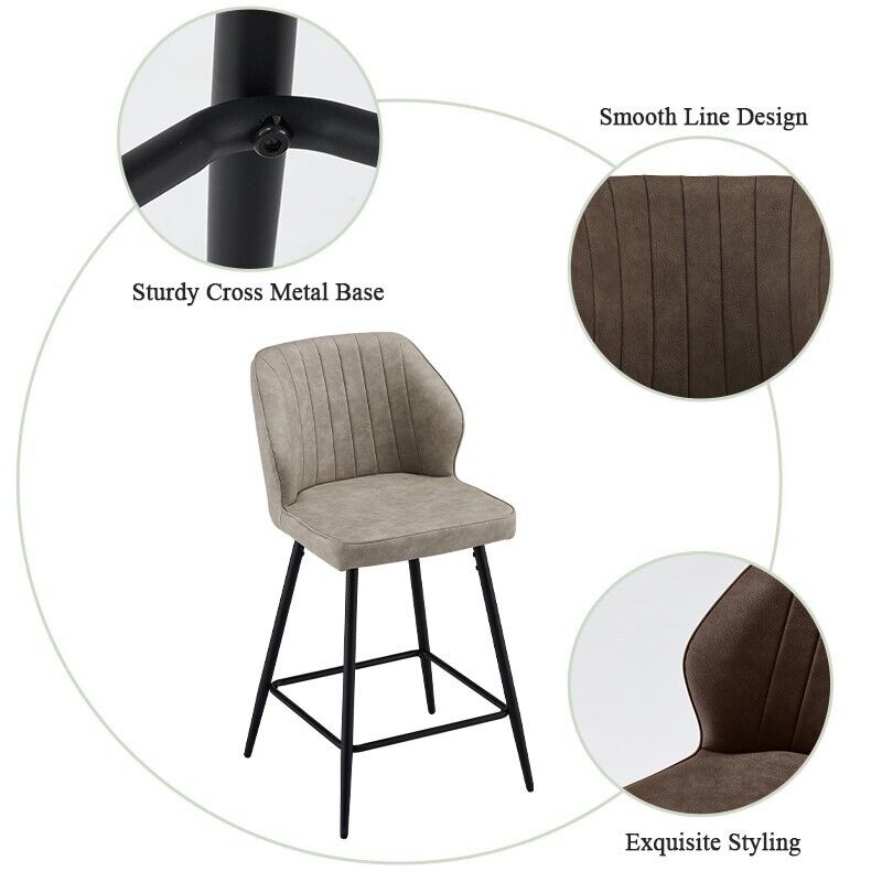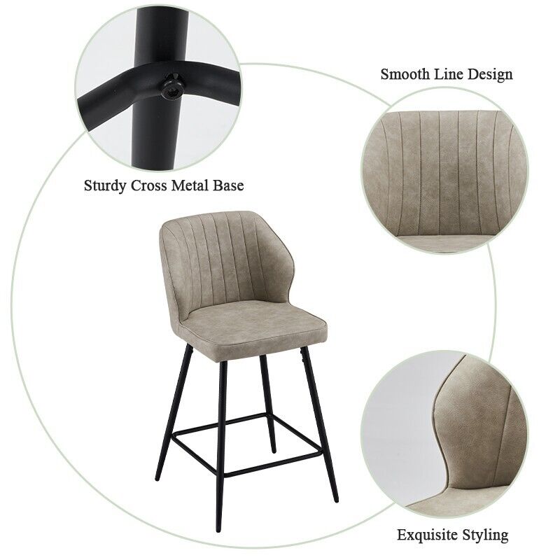 4X Beige PU Bar Stools Breakfast Pub Chair Footrest Kitchen Seat Height 66 cm