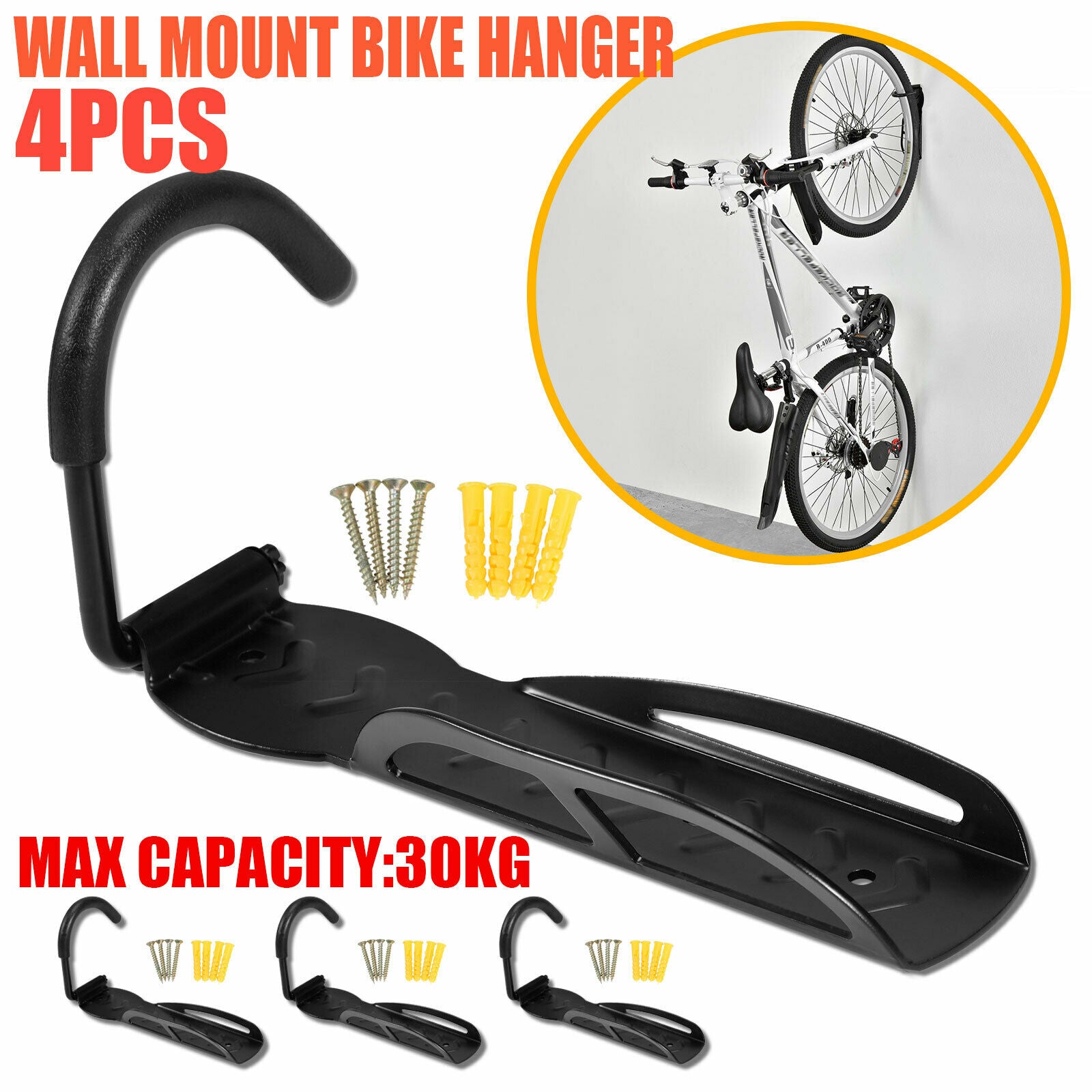 4x Bike Storage Rack Hook Wall Mount Vertical Garage Bicycle Hanger Stand Holder