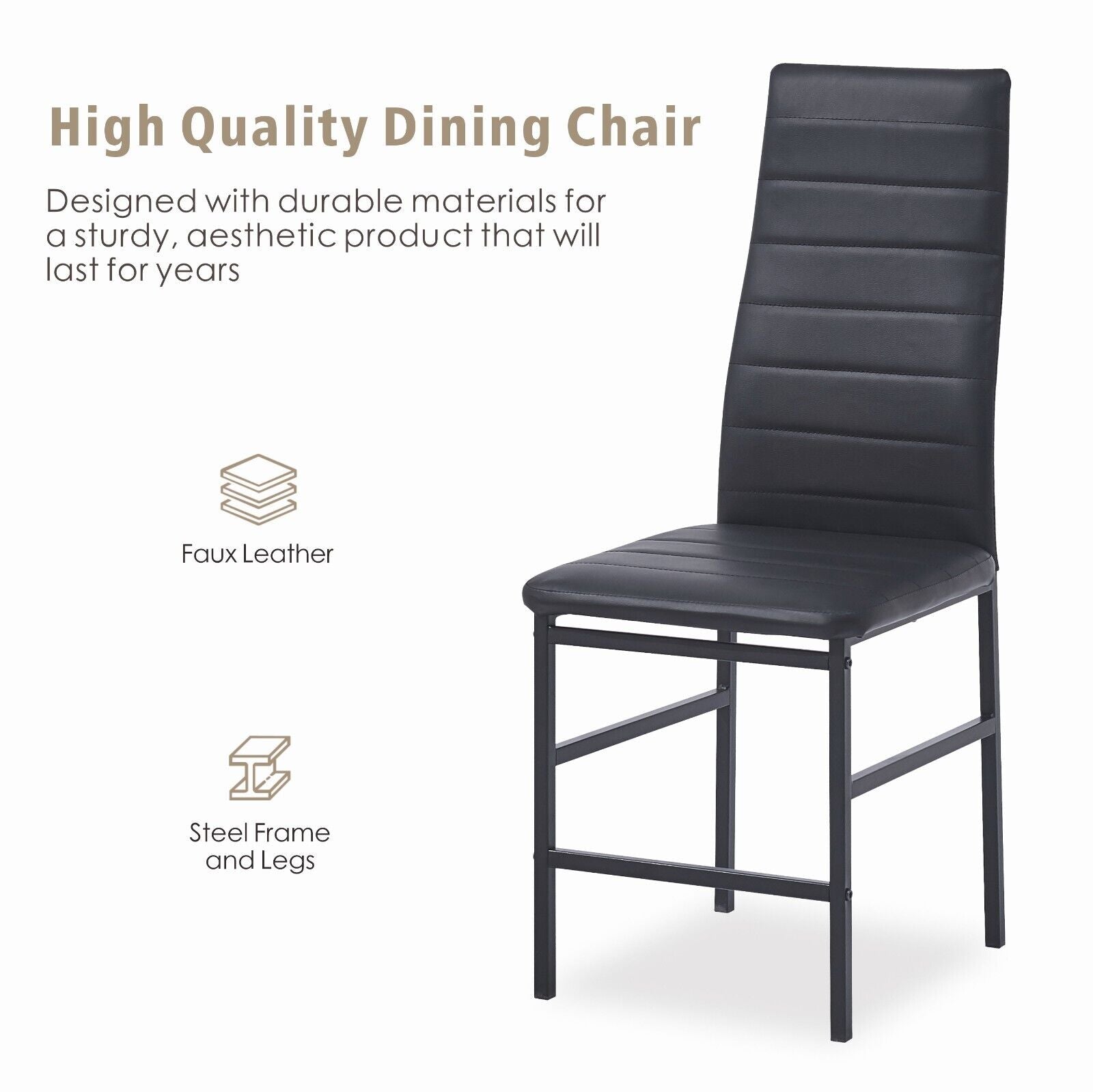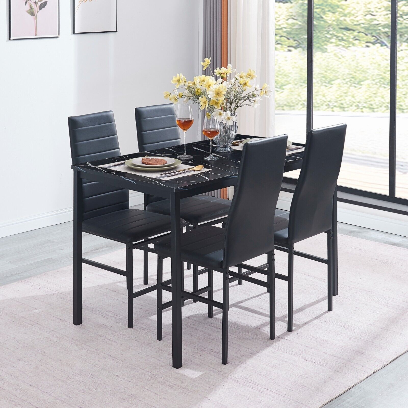 4x Black Faux Leather Dining Chairs&Black Marble MDF Top Dining Table Dining Set
