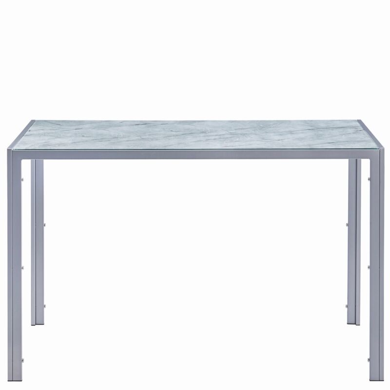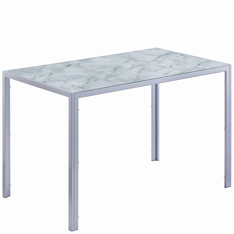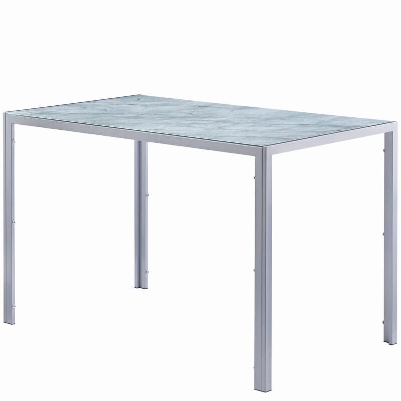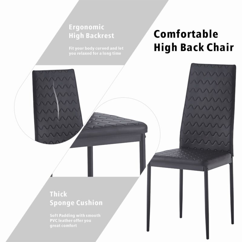 4x Black Faux Leather Dining Chairs&Grey Marble Tempered Glass Dining Table Set