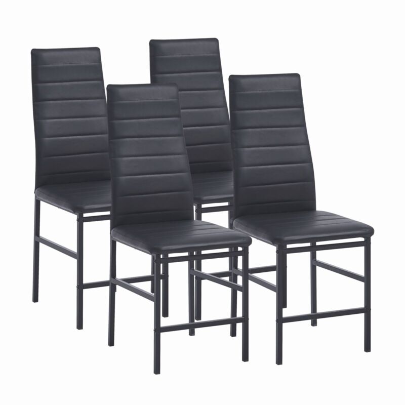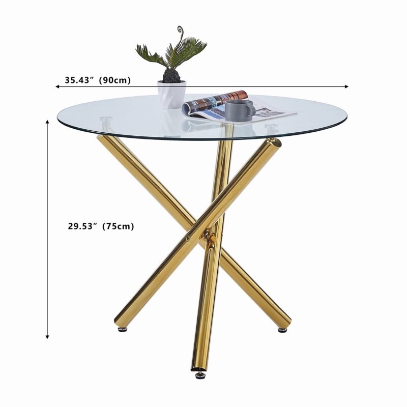 4x Black Faux Leather Dining Chairs & Round Clear Glass Dining Table Golden Legs