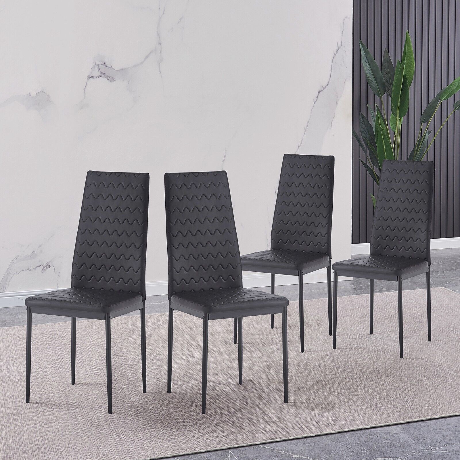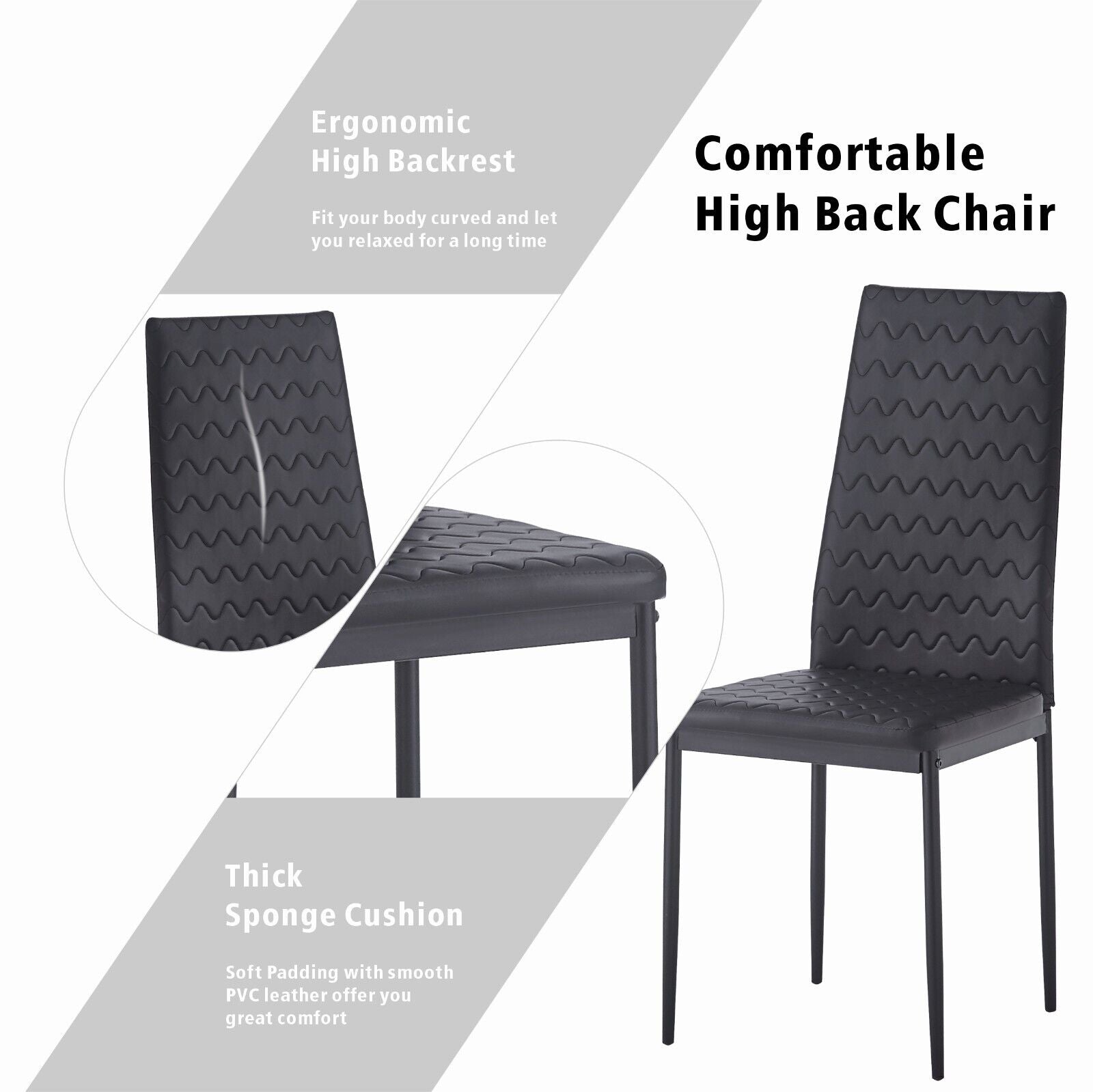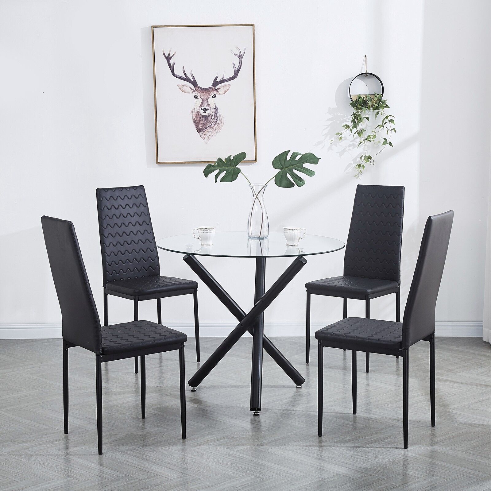 4x Black Faux Leather Dining Chairs Round Tempered Glass Black Legs Dining Table