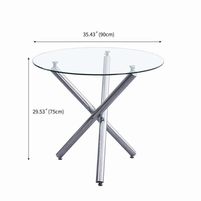 4x Black Faux Leather Dining Chairs Round Tempered Glass Silver Leg Dining Table