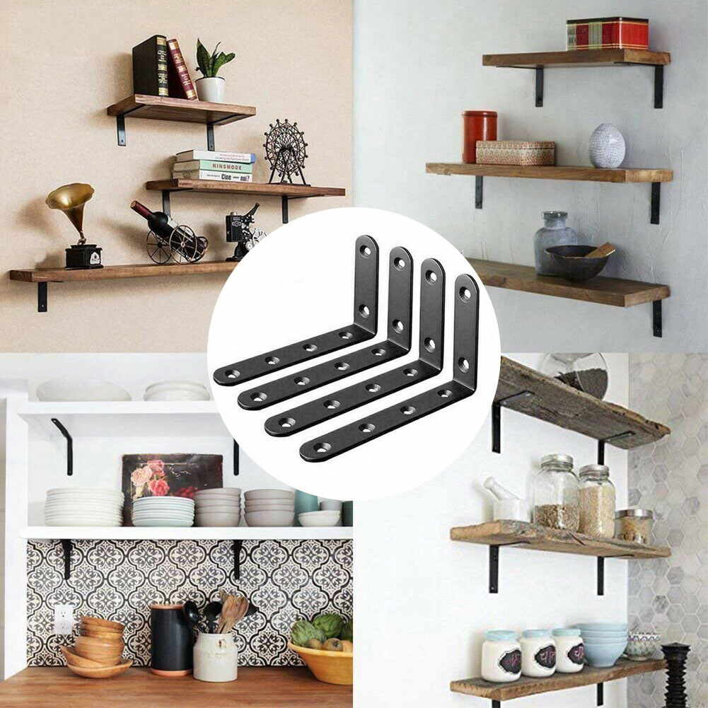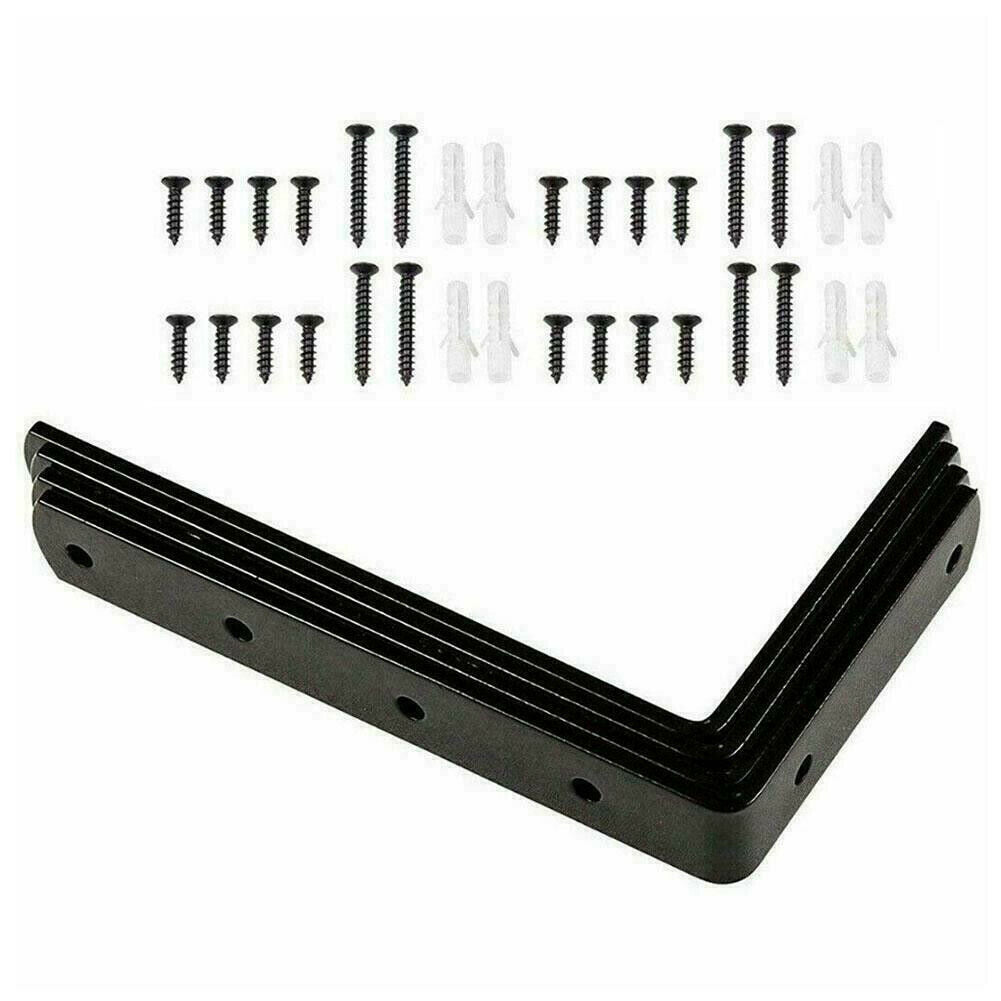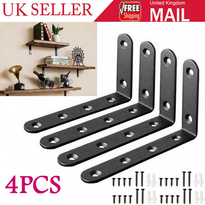 4x Black Wall Mounted L Shaped Angle Shelf Brackets Heavy Duty Corner Support UK