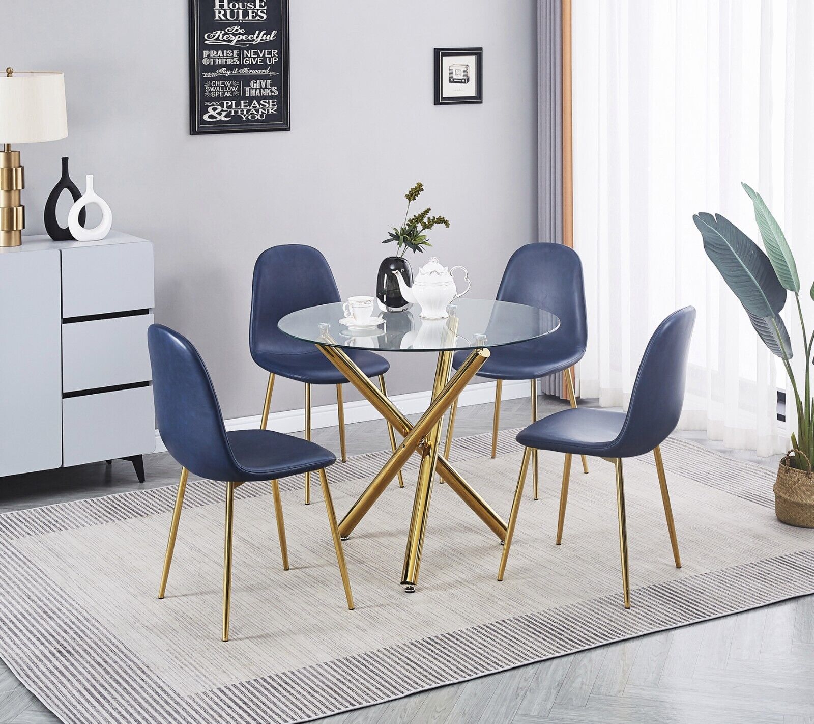 4x Blue PU Leather Dining Chairs Golden Chromed Legs Kitchen Dining Room Chairs