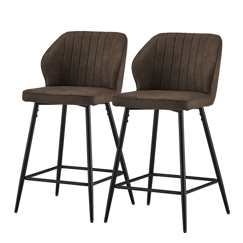 4X Brown PU Bar Stools Breakfast Pub Chair Footrest Kitchen Seat Height 66 cm